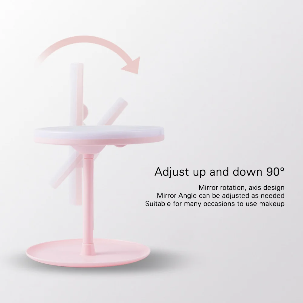 Настольное косметическое зеркало со светодиодным светильник, розовы...