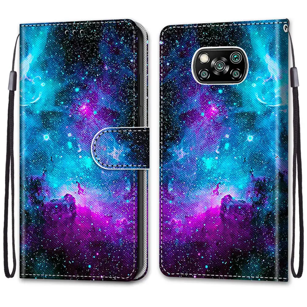 Раскрашенный кожаный флип-чехол для телефона POCO X3 NFC M3 для Xia...