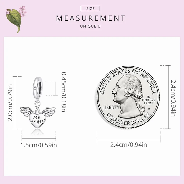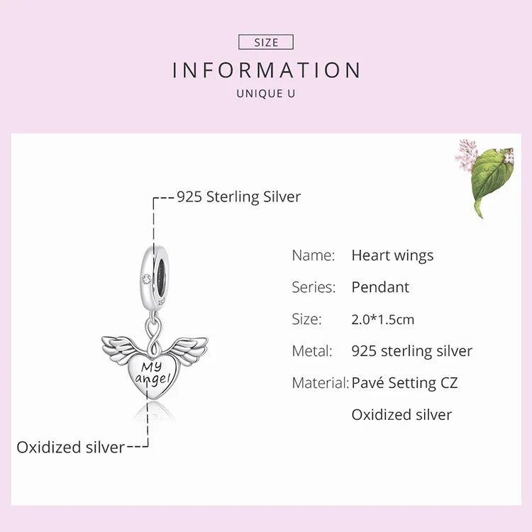 Подвеска для браслета Мой ангел, в виде сердца