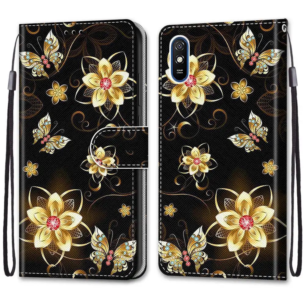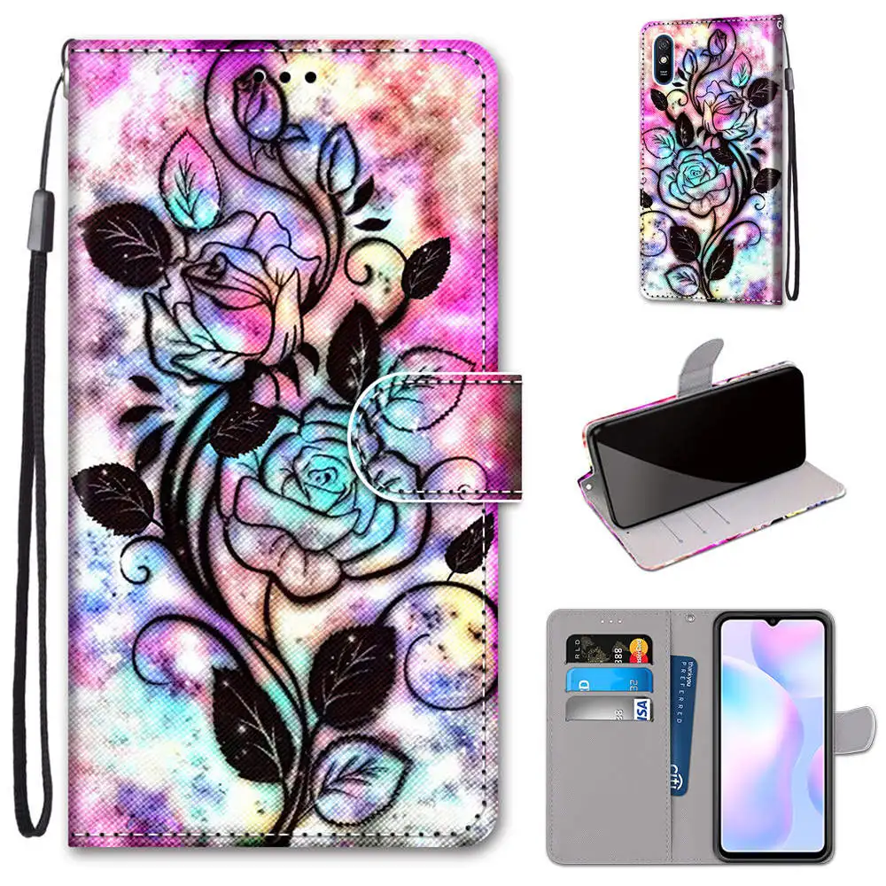 Модный чехол для телефона с цветами для Xiaomi Mi 10 10T Lite Redmi Note 9 9A 9AT 9C 9S 9T Pro POCO X3 NFC M3, кожаный флип-чехол-книжка с подставкой Etui