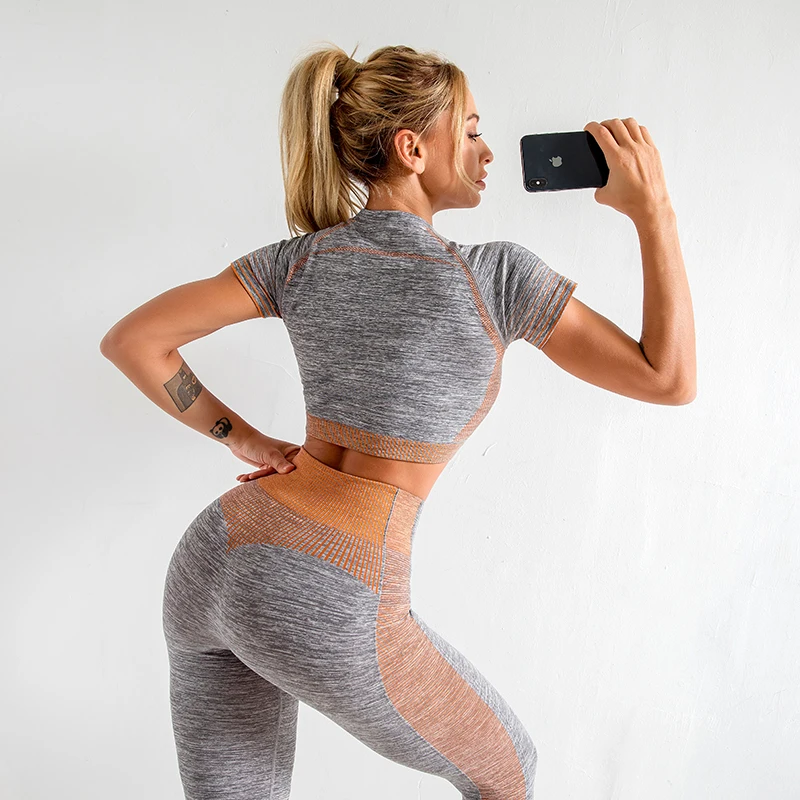 Бесшовный Женский комплект для йоги, спортивный комплект, женская спортивная одежда, комплект для фитнеса, Женский Осенний бесшовный Тренировочный Набор для тренажерного зала
