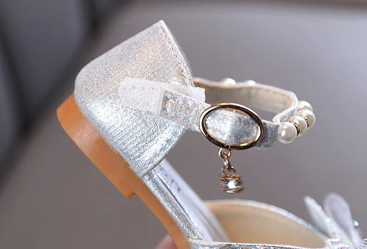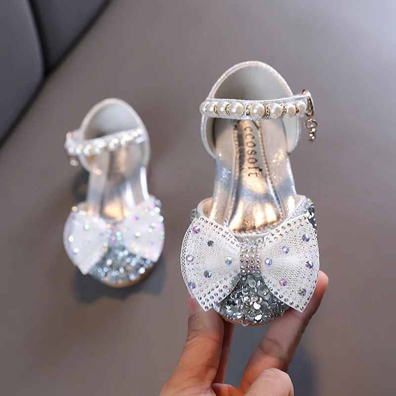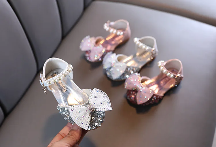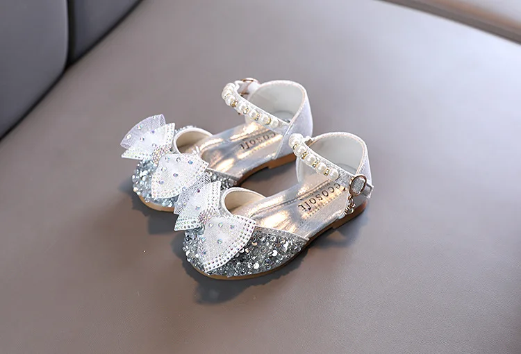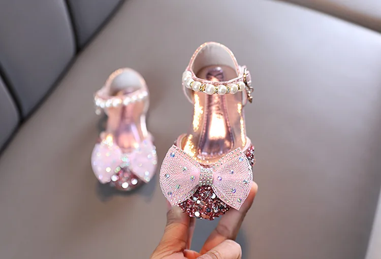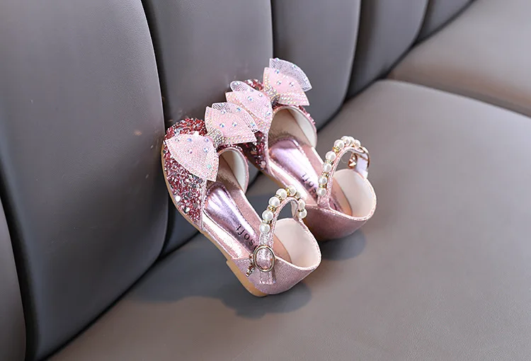 Лидер продаж, детская обувь для девочек с блестками и жемчугом и бантом, милая обувь принцессы, новые сандалии для весны и лета, Детская праздвечерние чная танцевальная обувь G509