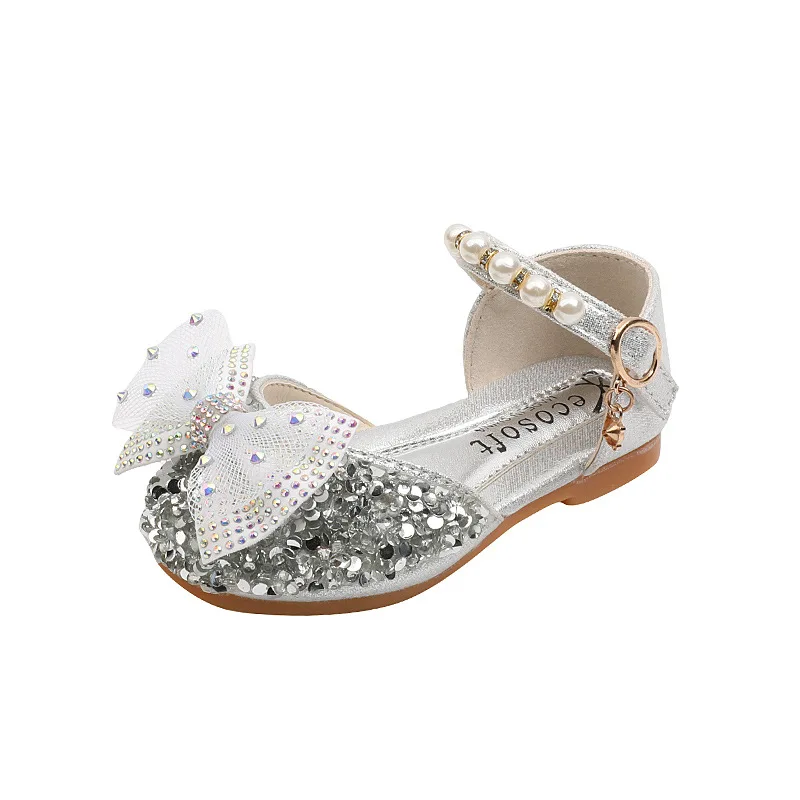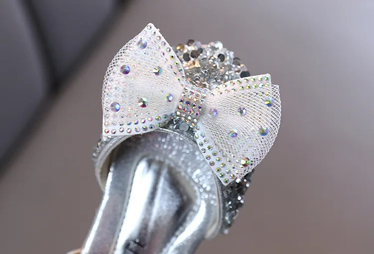 Детская обувь принцессы с блестками и бантом, Детские Серебристые р...