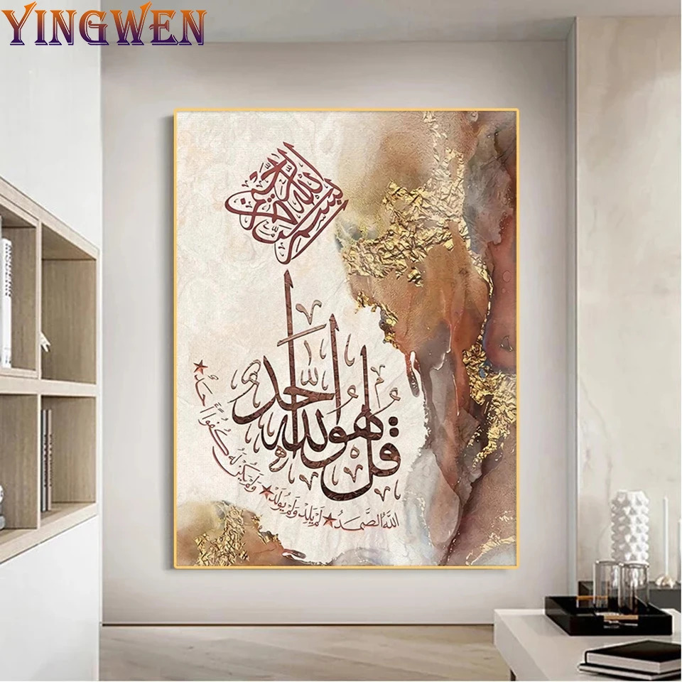 Исламская каллиграфия из Корана 5D алмазная картина абстрактное искусство изображение на золотой фольге вышивка крестиком мусульманская религия домашний декор