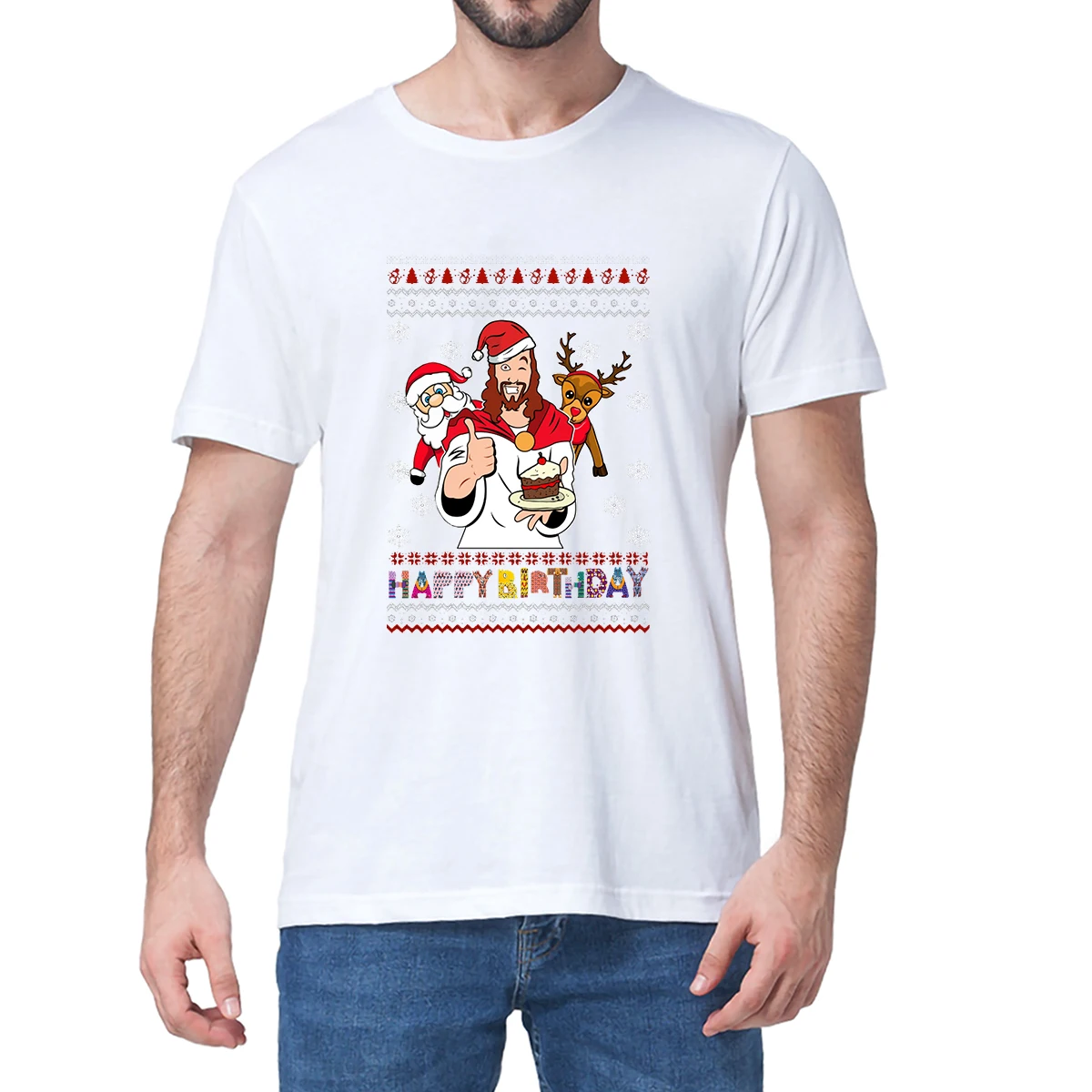 Футболка Мужскаяженская с Санта Клаусомкотомединорогом, 100% хлопок