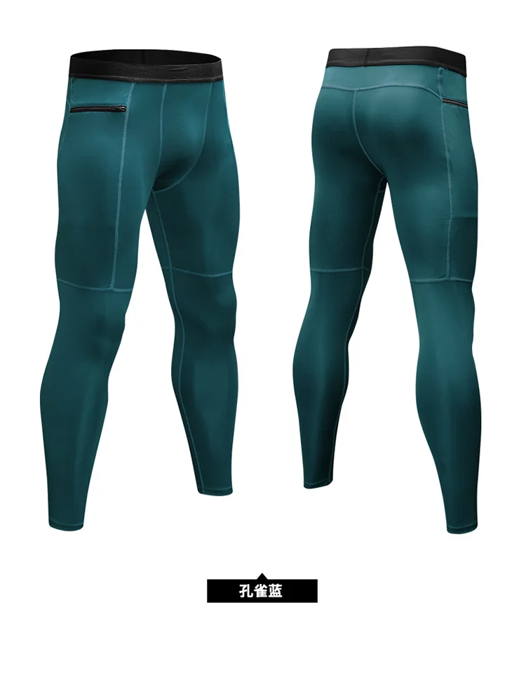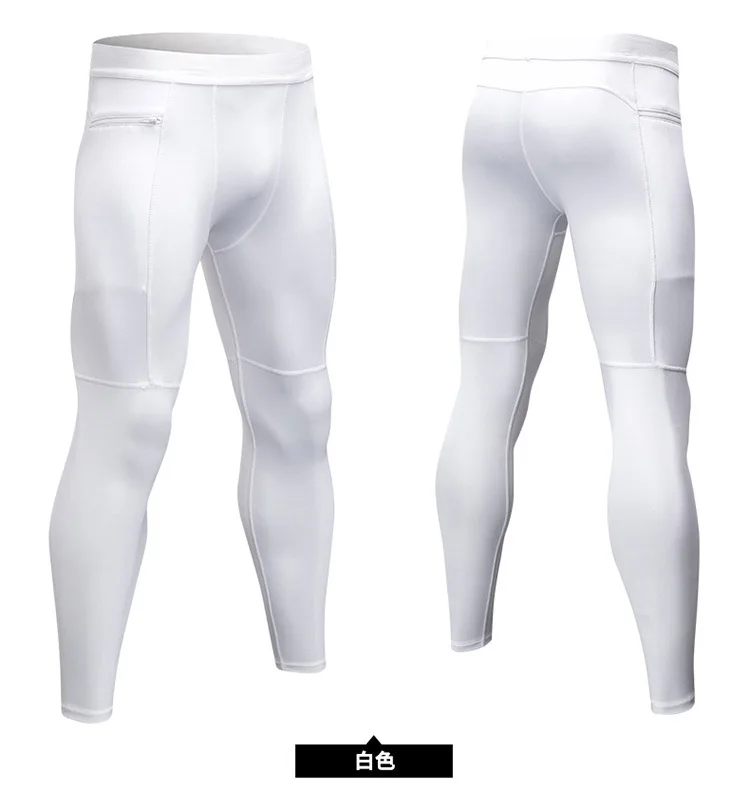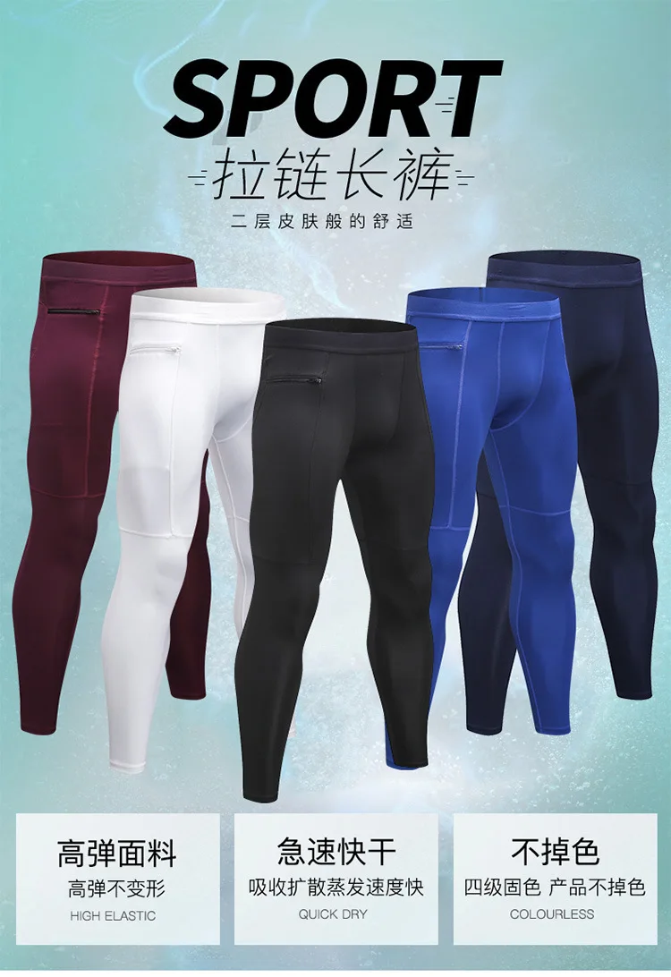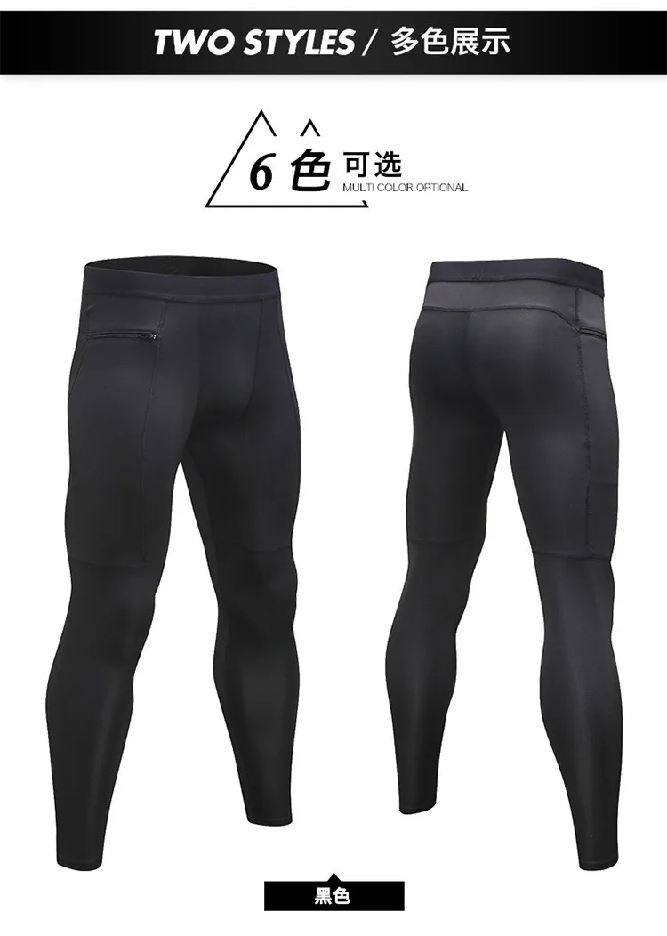 Мужские штаны для фитнеса с карманами на молнии, спортивные штаны для бега, впитывающие пот, быстросохнущие эластичные колготки