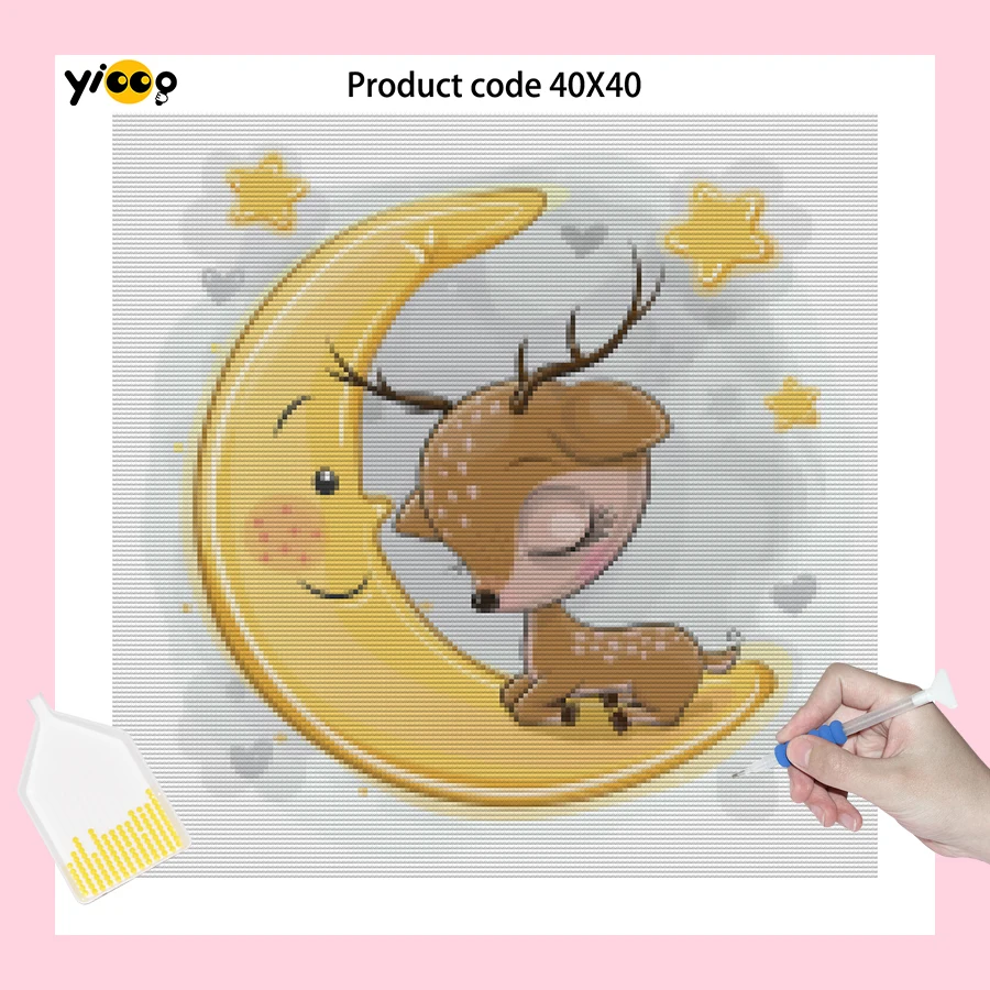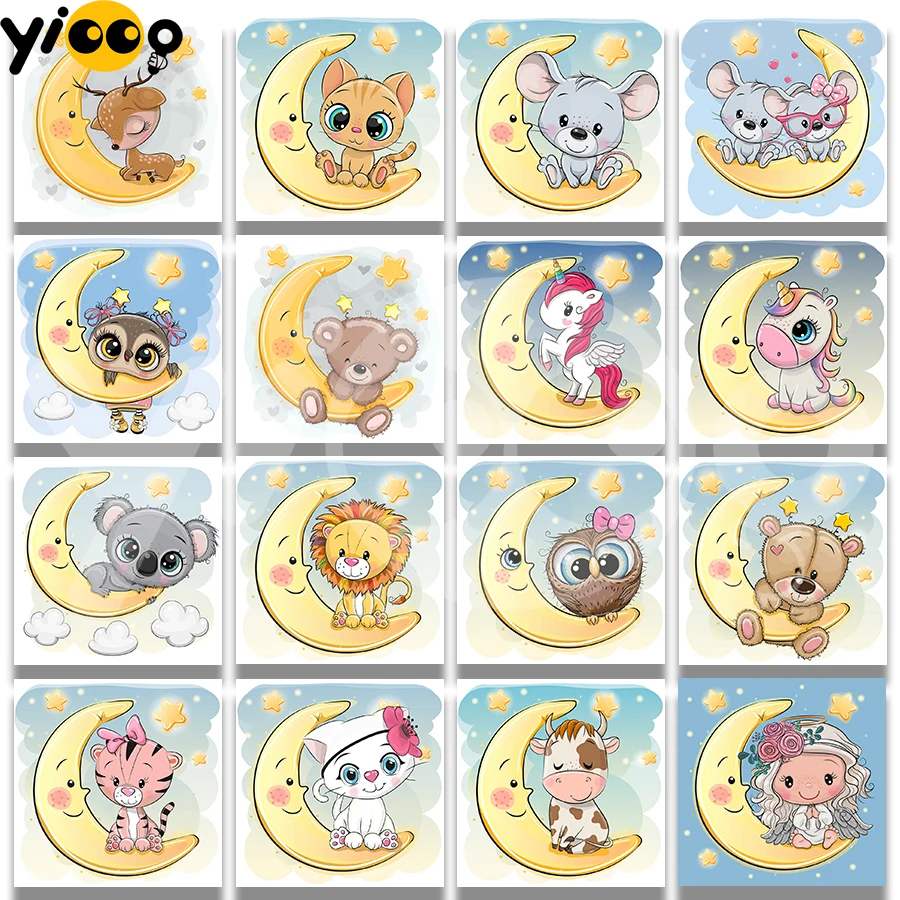 Полноразмернаякруглая алмазная живопись, вышивка, мультяшная луна, животные стразы, мозаика, вышивка крестиком, домашний декор, подарок