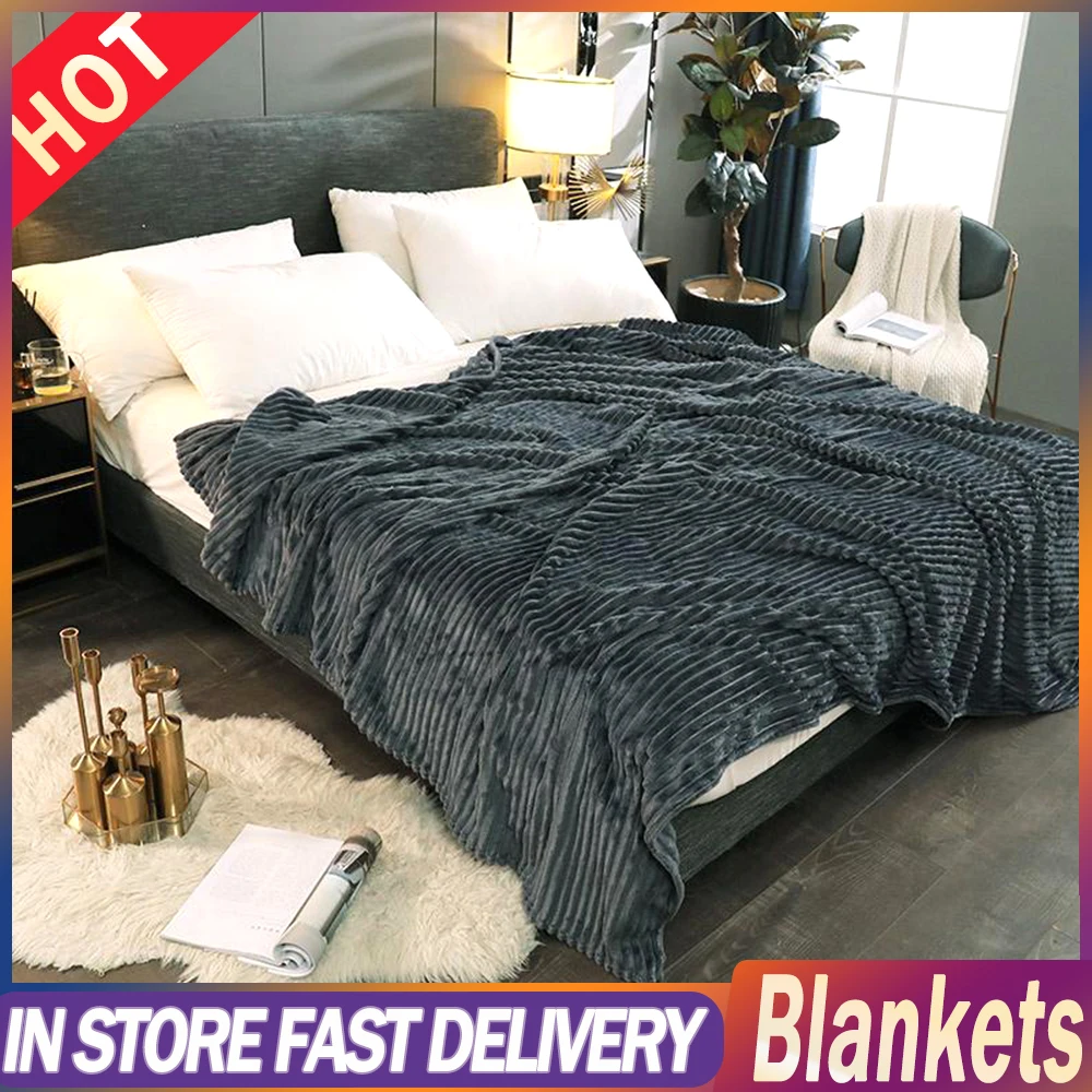 Покрывало для дивана, спальни, однотонное Полосатое покрывало, Флан...