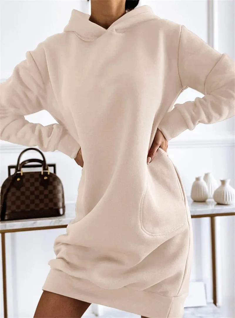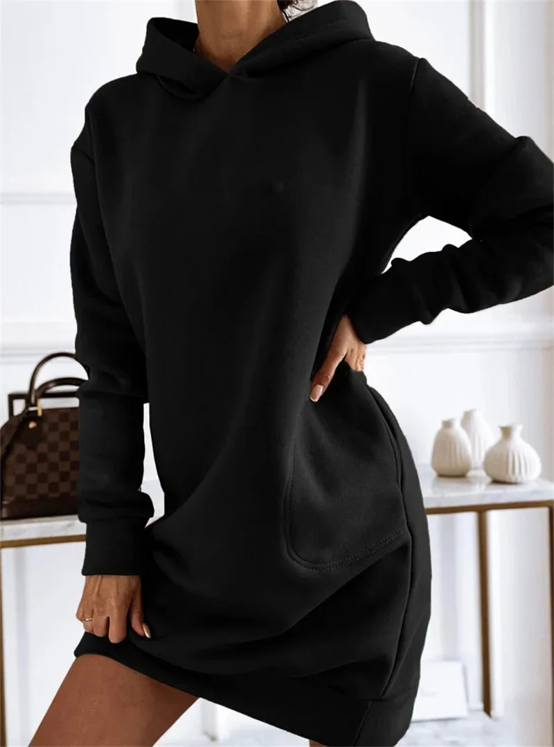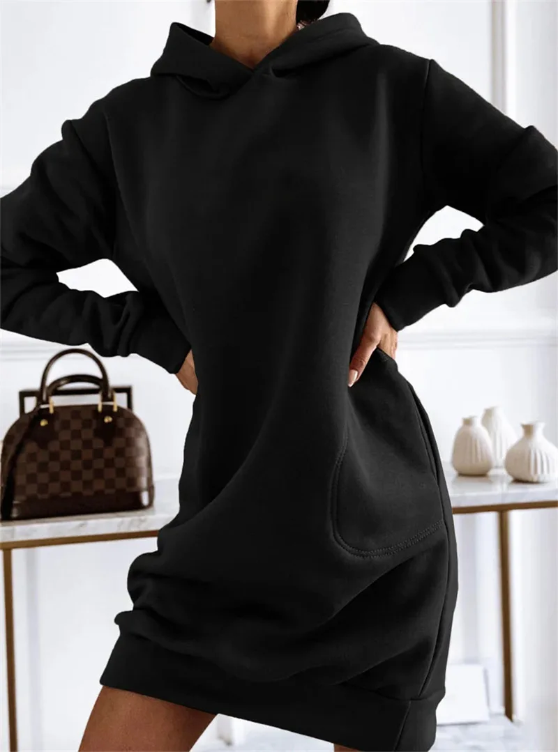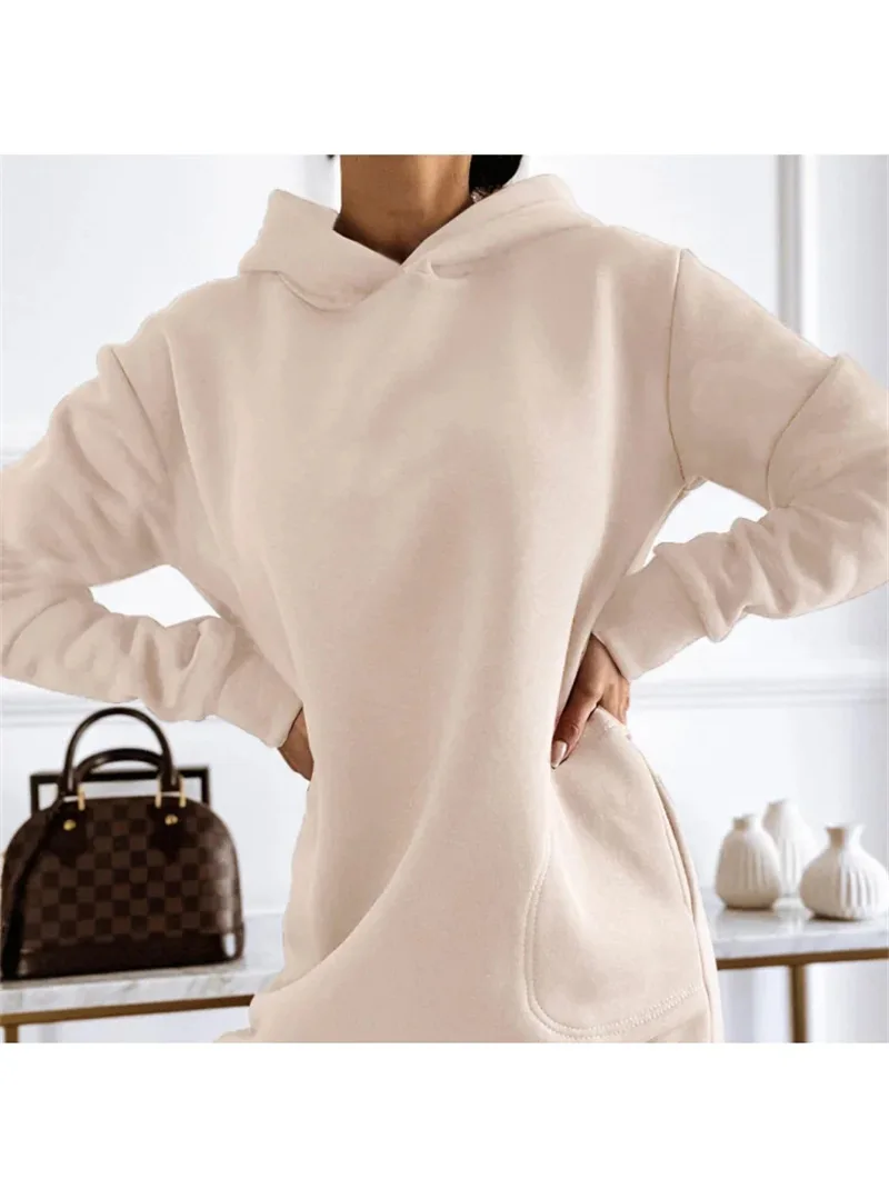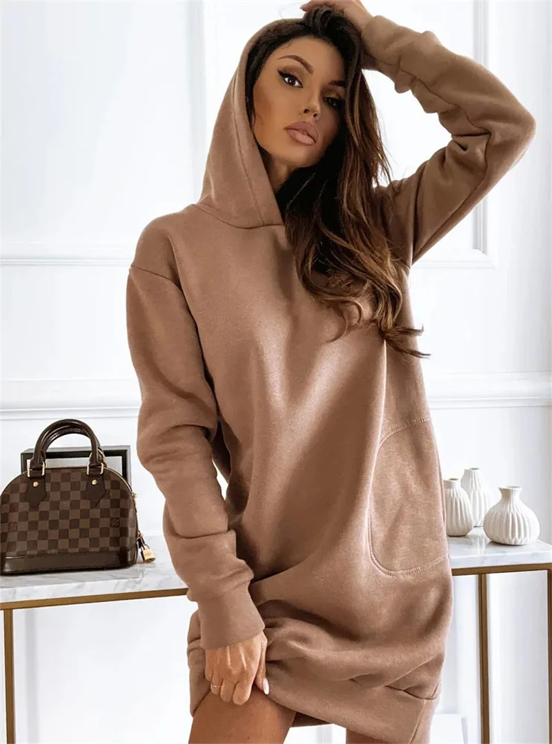 Женская одежда, платье с капюшоном, новые модные повседневные свободные туники, пуловер с длинным рукавом, однотонные свитшоты, платья на осень и зиму