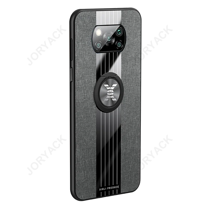 Чехол с кольцом-держателем для POCO X3 Pro, тканевая текстура, твер...