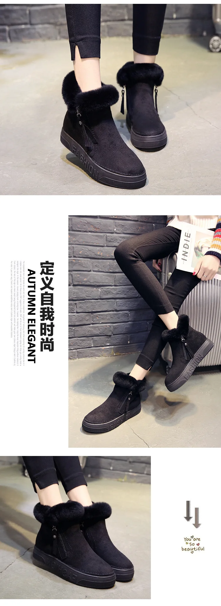Женские ботинки на плоской подошве, зимние ботинки, женские теплые Нескользящие меховые замшевые ботильоны, женская модная повседневная обувь на платформе