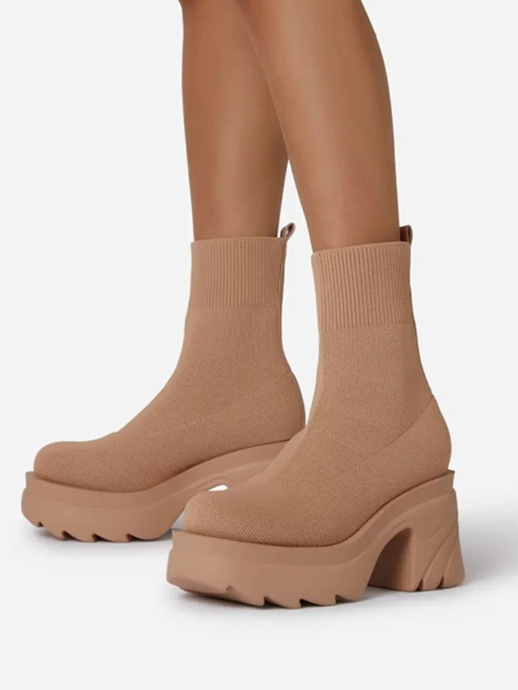 Женские ботинки-носки на платформе, светло-коричневые сапоги из эла...