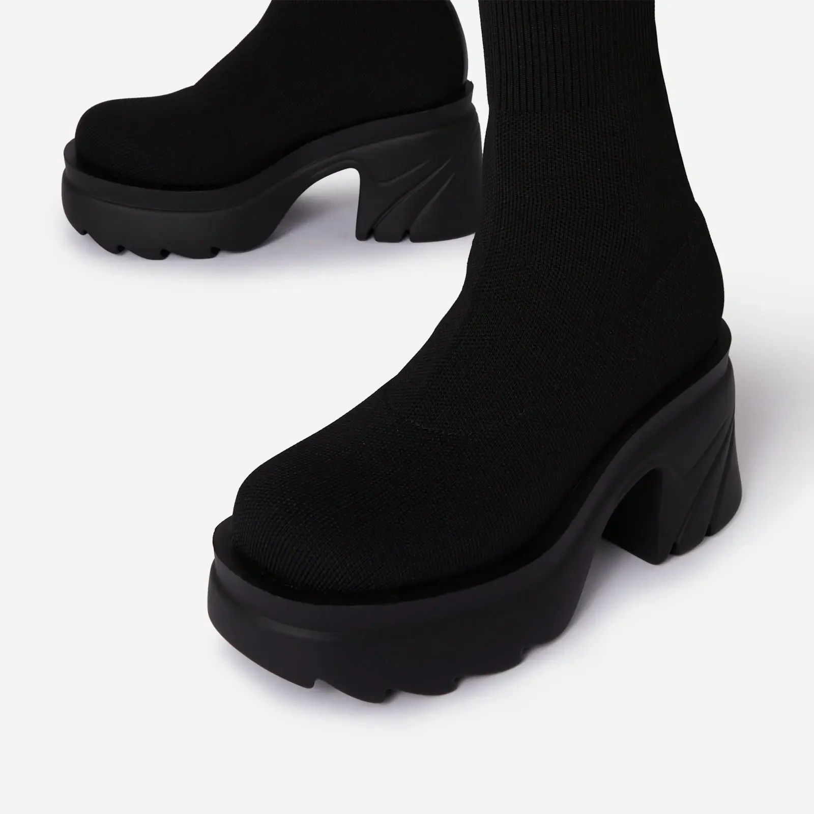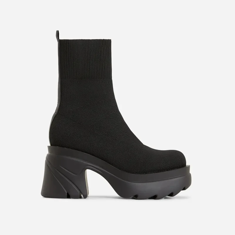 Женские ботинки-носки на платформе, черные ботинки из эластичной ткани, до середины икры, на толстом каблуке, размер 43, для осени и зимы
