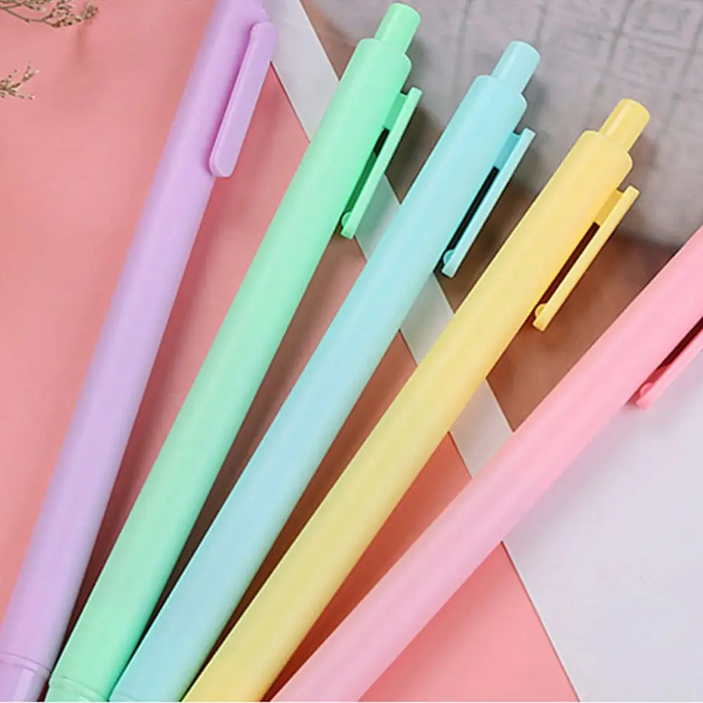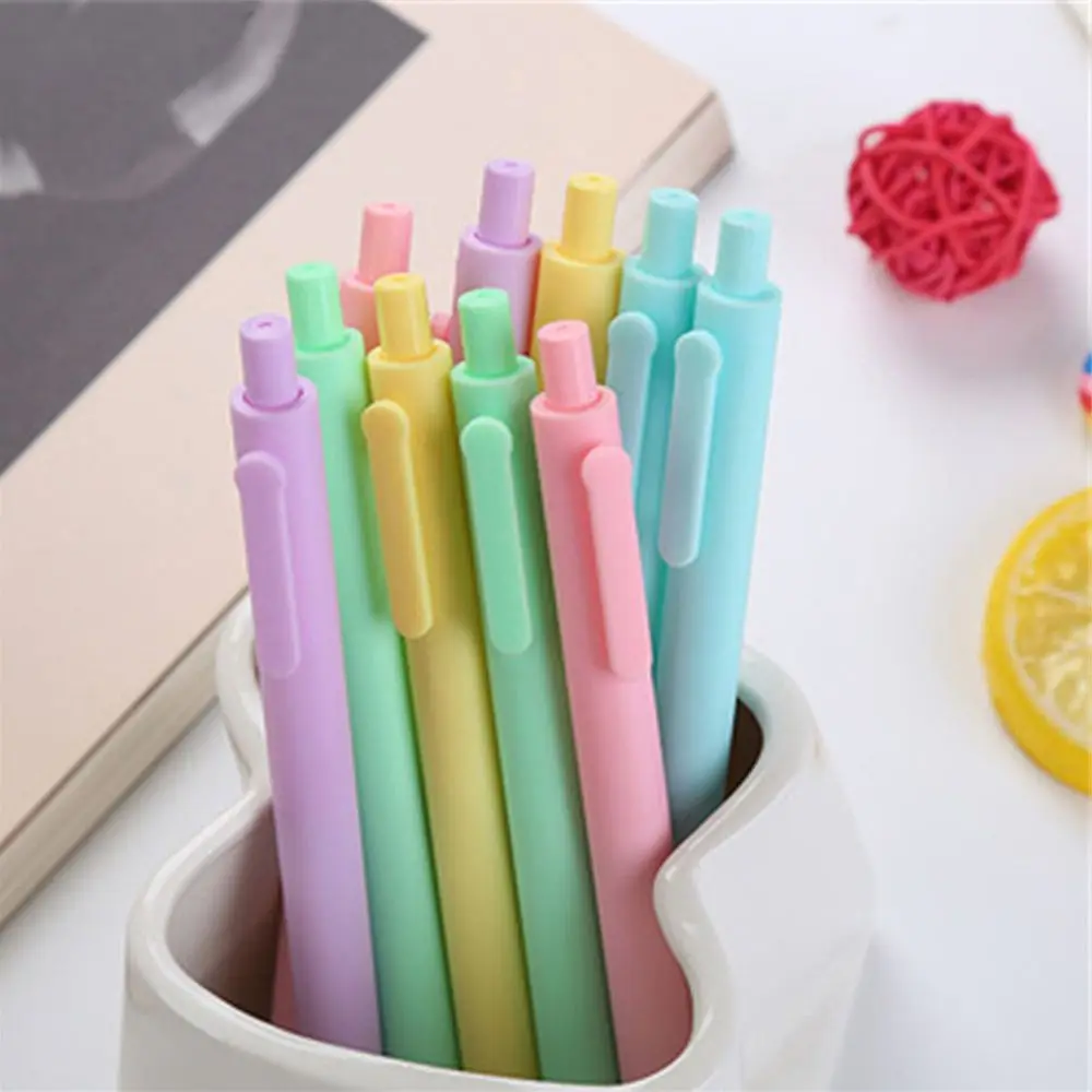 100% новый и высокое качество Название продукта: цветной пресс-гелевая ручка макарон Материал: пластик Вместимость: 0,5 мм пуля Цвет чернил: черный Размеры: около 14,5 см Вес: 7,5 г Посылка включает в себя: 1 гелевая ручка