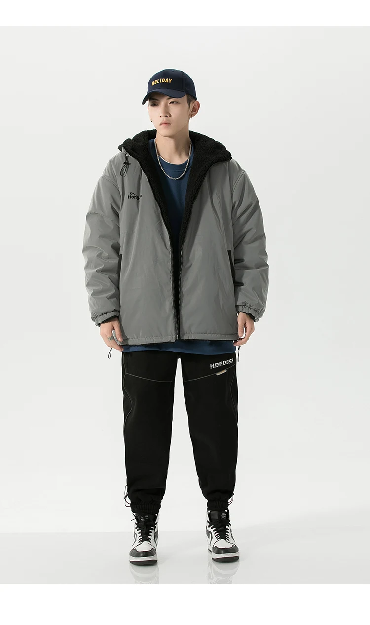 Мужская зимняя куртка GlacialWhale из овечьей шерсти, теплые парки с однотонным узором, парки с капюшоном, хлопковое стеганое пальто, мужские двусторонние куртки для мужчин