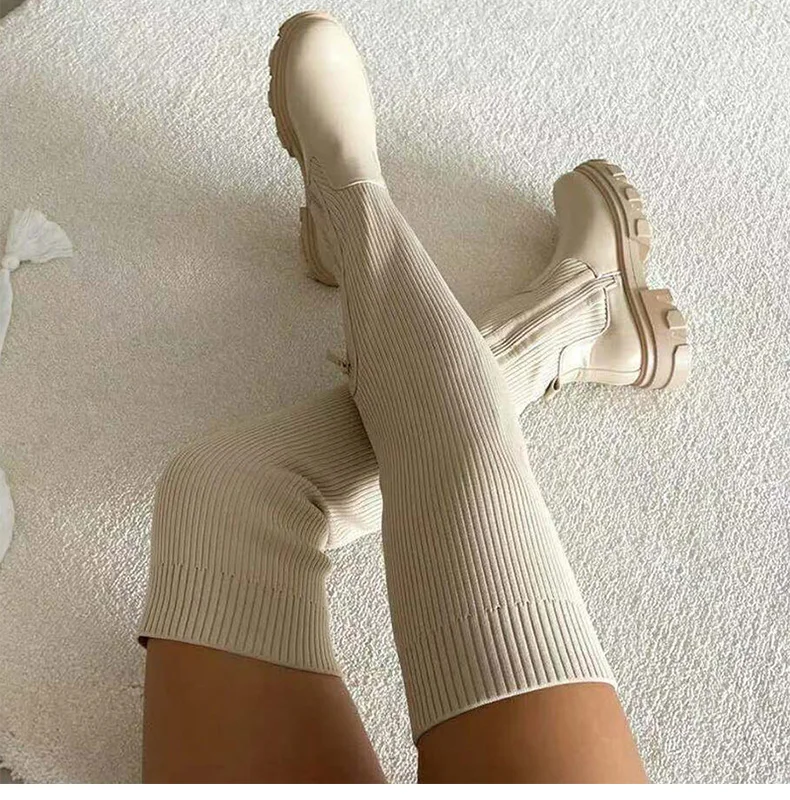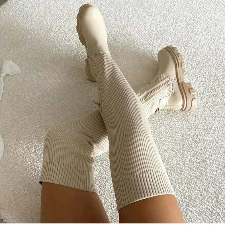 Женские сапоги; Коллекция 2021 года; Женские высокие сапоги; Вязаные ботфорты; Обувь на каблуке; Женская обувь на платформе; Botas De Mujer; Сезон осень-зима