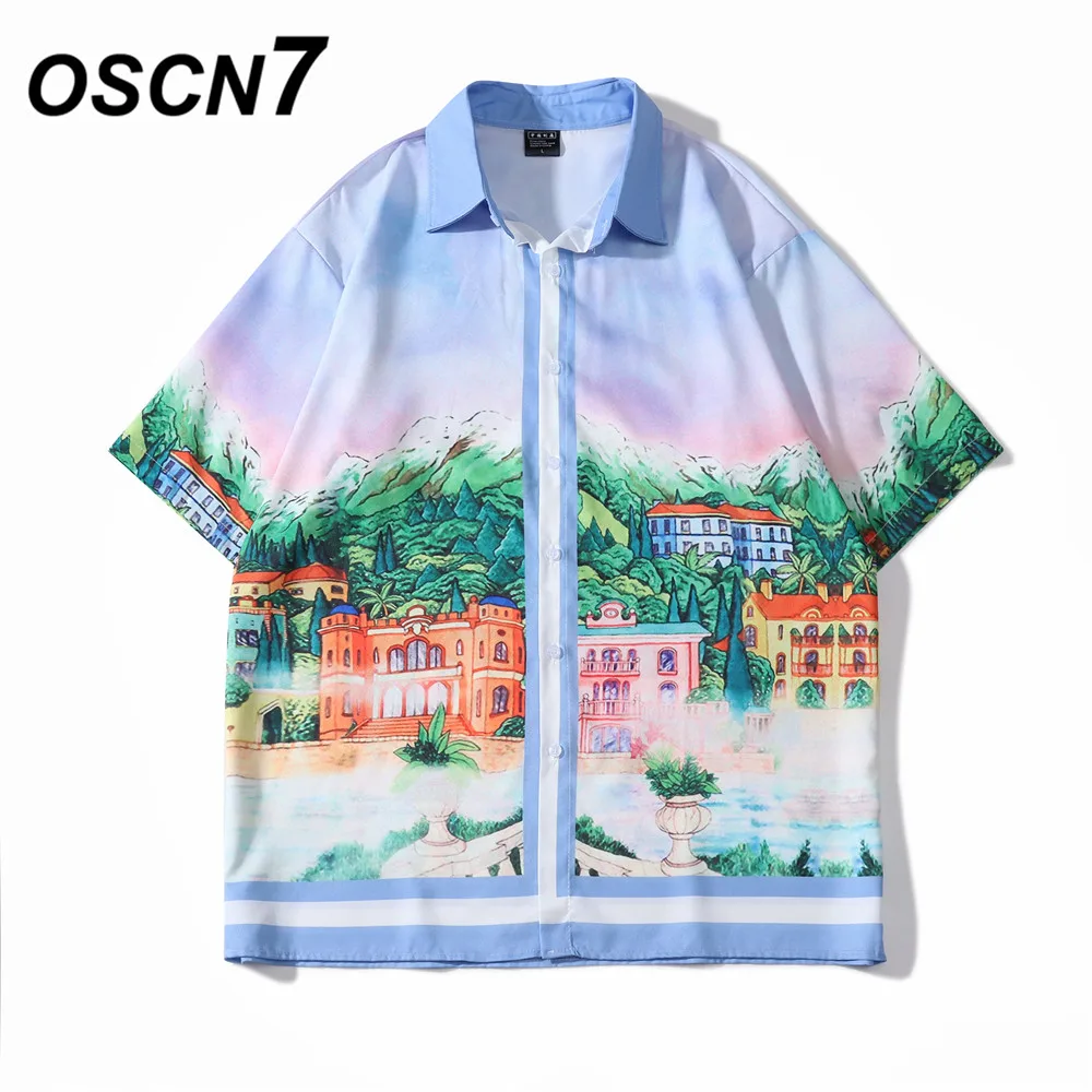 OSCN7 Повседневная рубашка с коротким рукавом и принтом для мужчин, уличная 2022, Гавайский пляж, большие размеры, женская мода, рубашки для мужчин, 3441