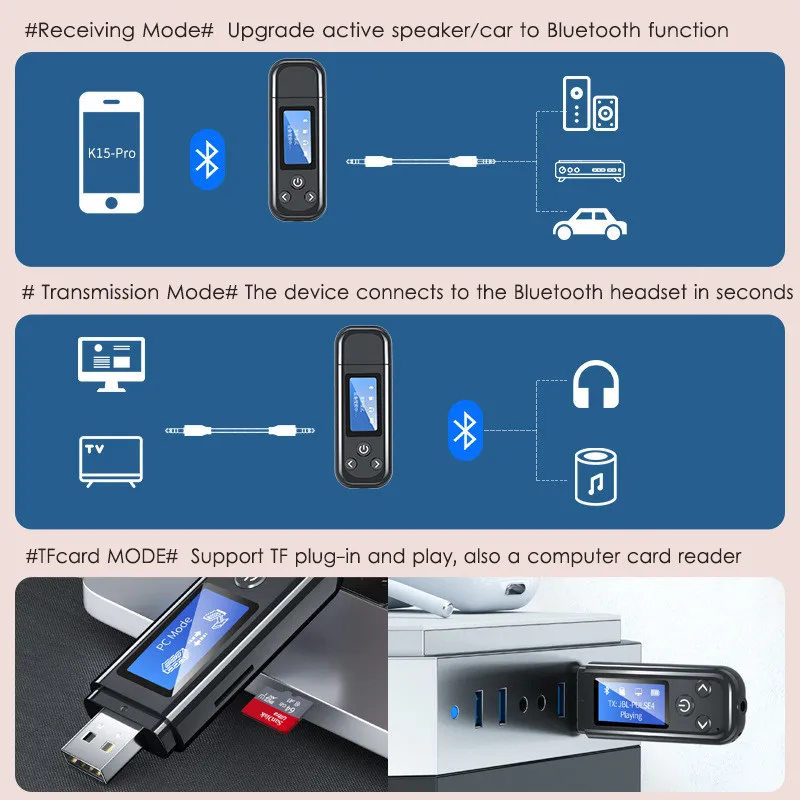 Features7:Bluetooth Transmitter 5.0 USB 3.5mm