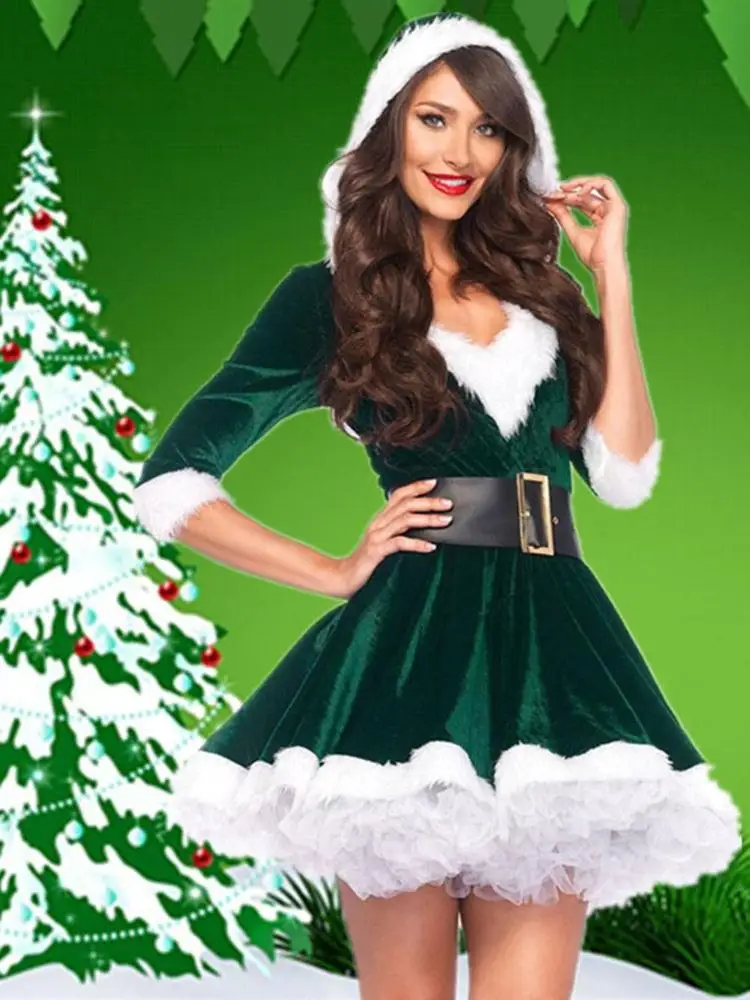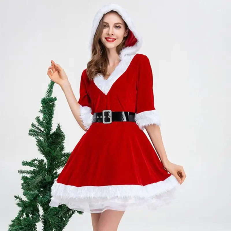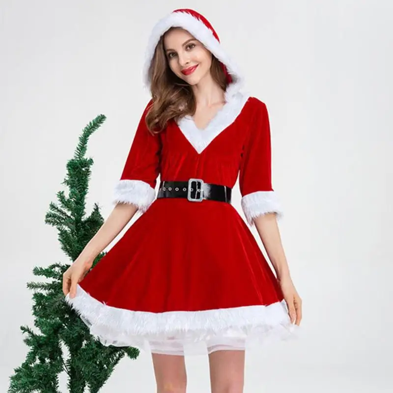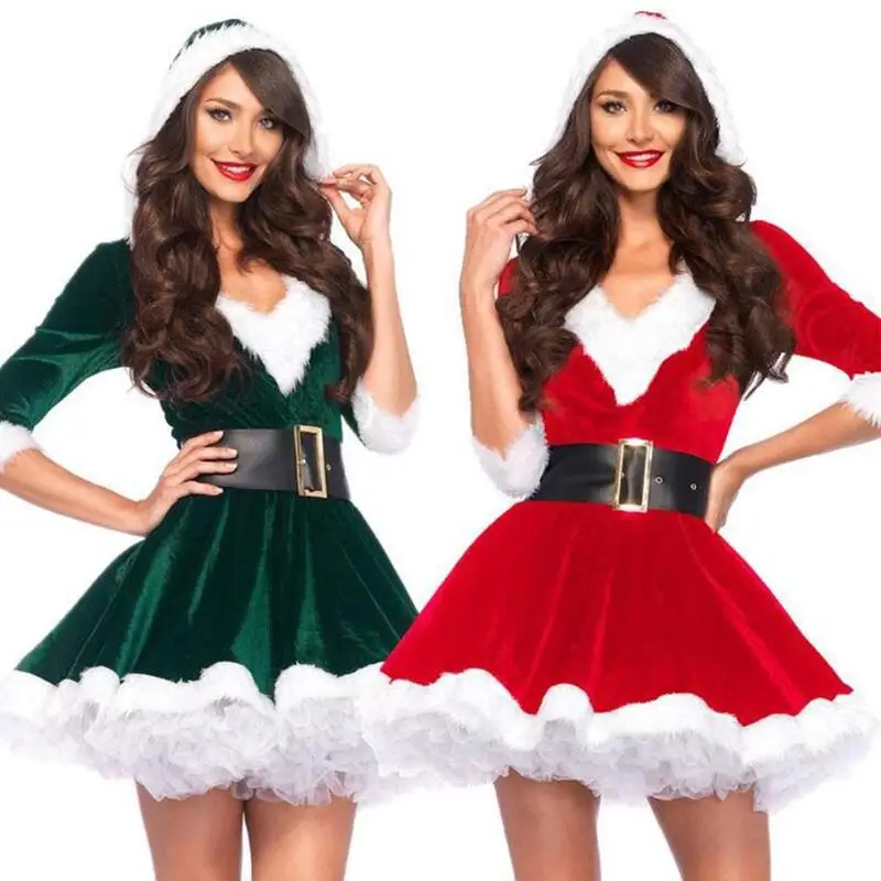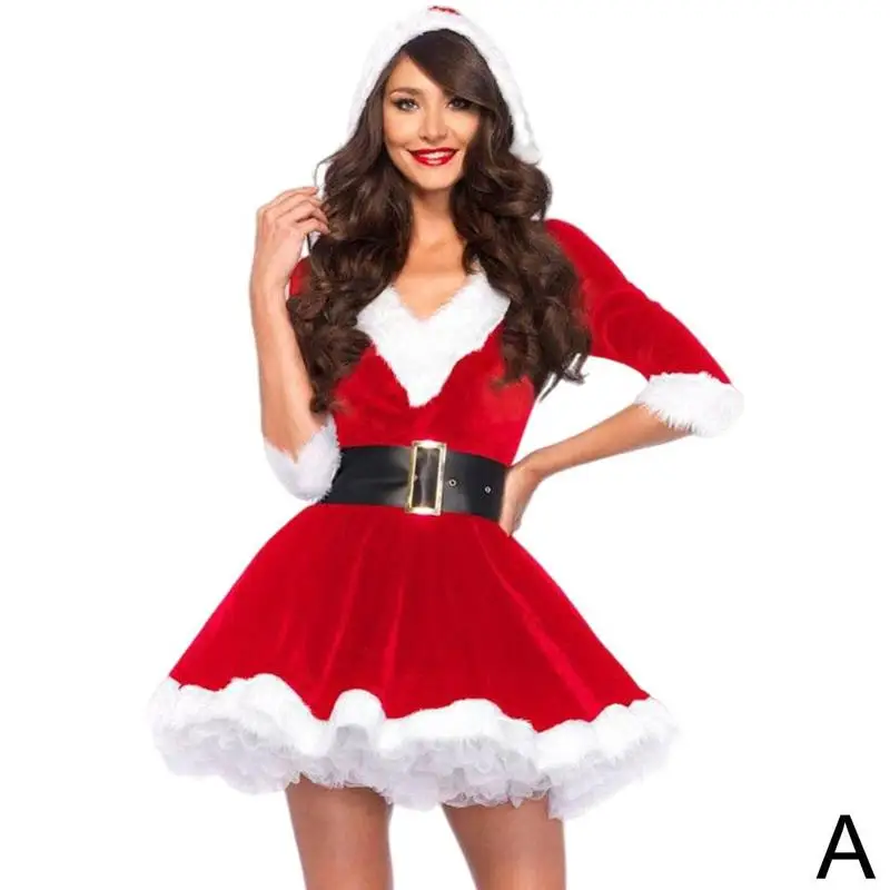 Наряды Мисс Санта Клауса, женские рождественские платья, нарядный костюм для взрослых с коротким рукавом S3d9