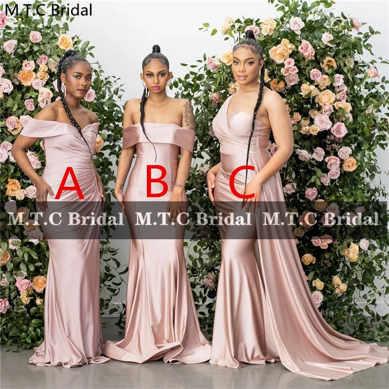 Длинные платья русалки для подружек невесты оптом для черных девушек блестящие шелковые атласные сексуальные платья с открытыми плечами для гостей свадьбы