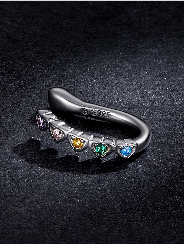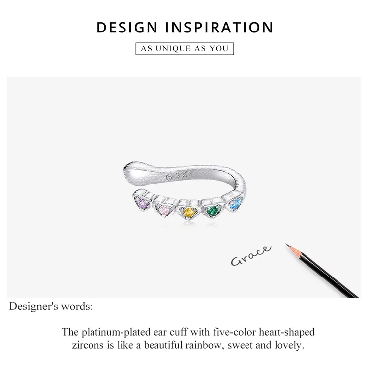 Bamoer, 1 шт., 925 пробы, серебро, радуга, любовь, ухо, манжета, цветное сердце, инкрустированное блестящим CZ, для женщин, серебряные ювелирные изделия для ушей, подарок
