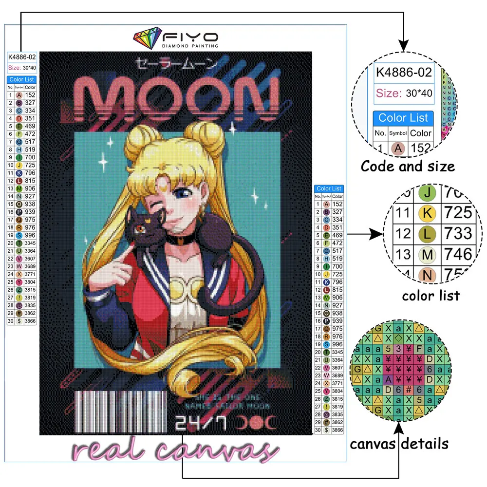 Алмазная живопись 5D сделай сам, аниме матрос Муна, вышивка крестик...