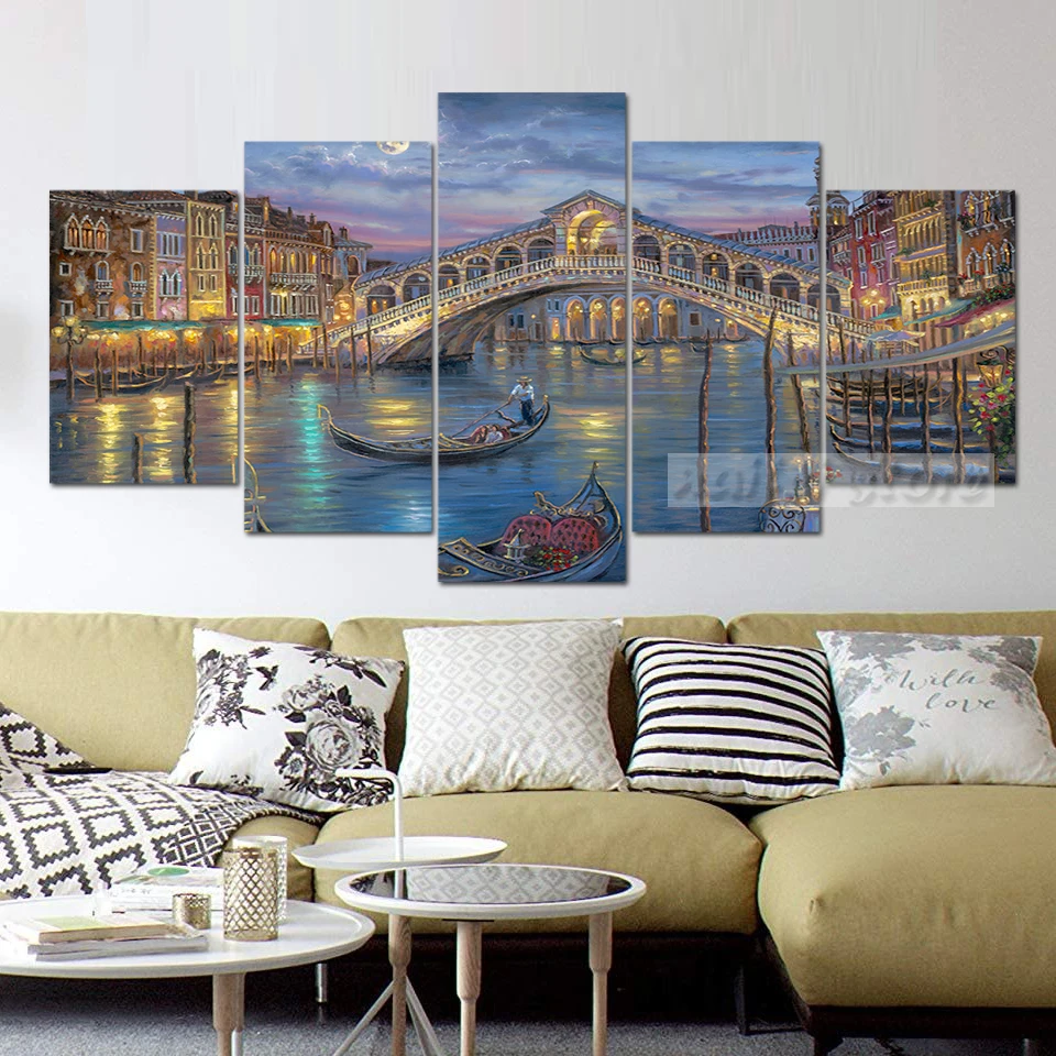Венеция, Италия, река, мост, ночная вода, город, алмазная живопись своими руками, мозаика, вышивка, наборы для вышивки крестиком, Рождество, домашний декор