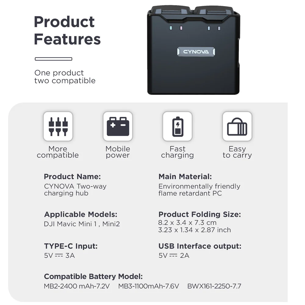 Зарядный концентратор CYNOVA DJI Mavic Mini 2, аксессуары для Mini 1 SE 2, менеджер по аккумуляторам, быстрая зарядка, внешний аккумулятор