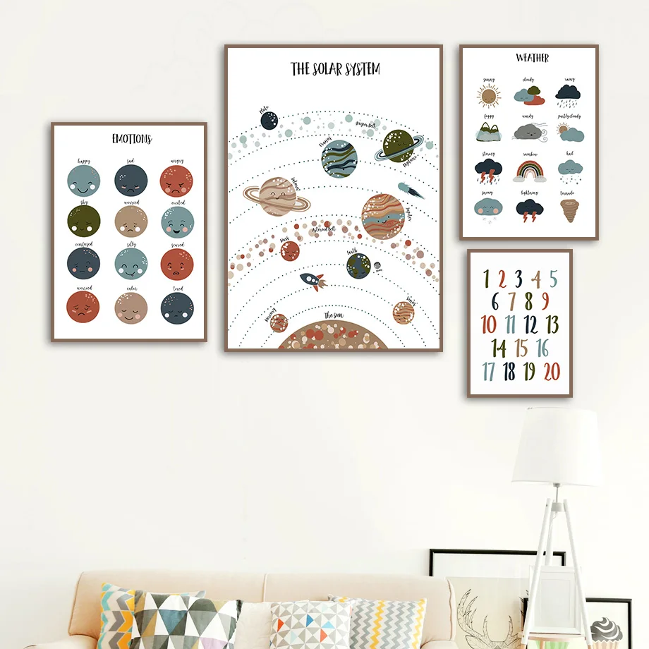 Настенная картина с розовыми цифрами, погодой, Солнечной системой, ...
