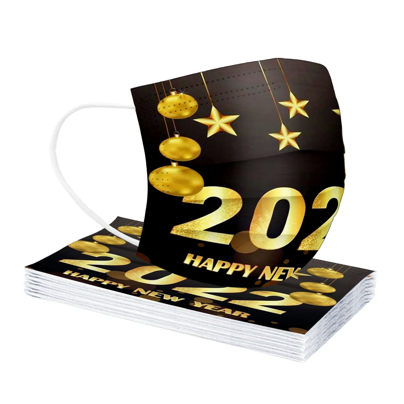10 шт., одноразовые маски для лица для взрослых с новым годом 2022