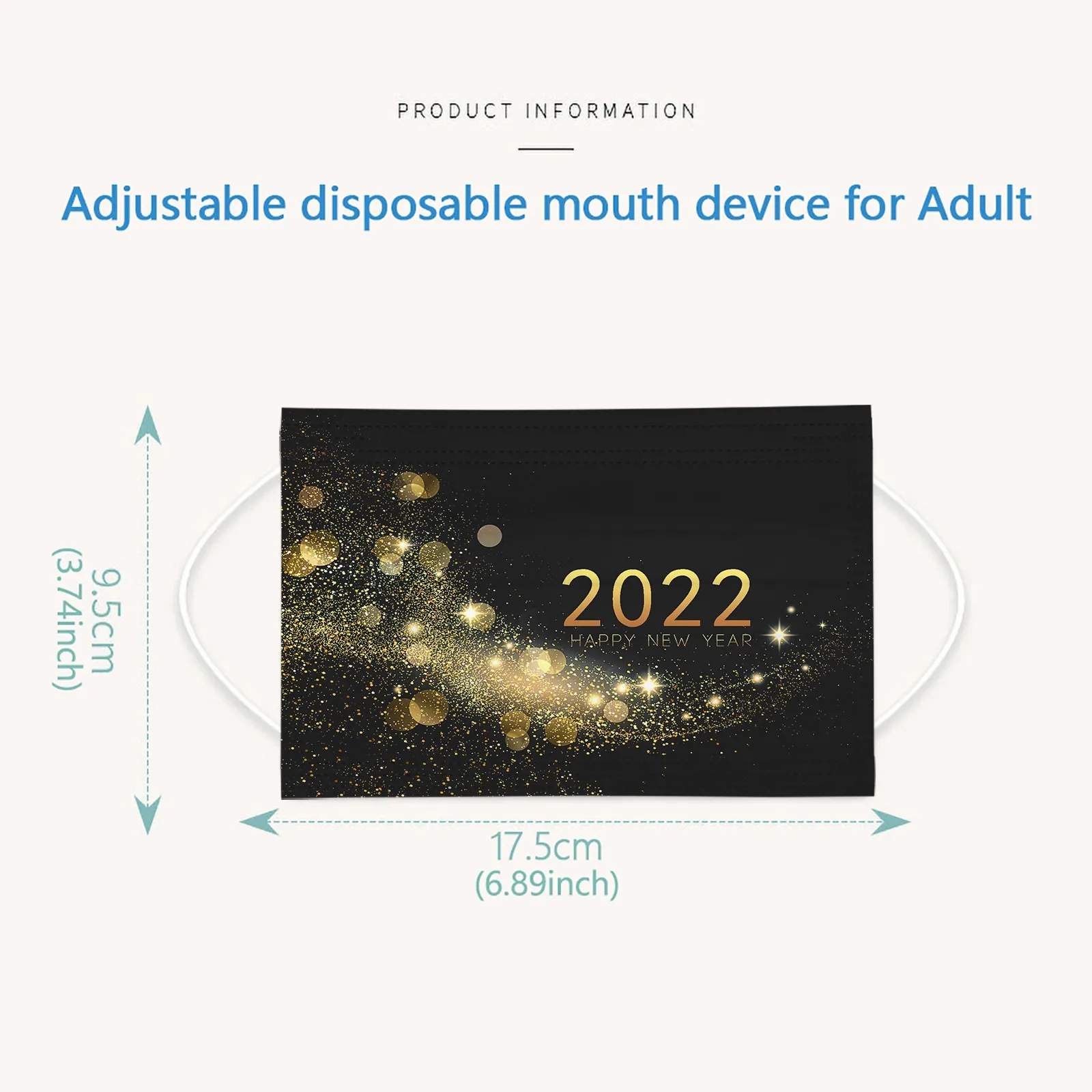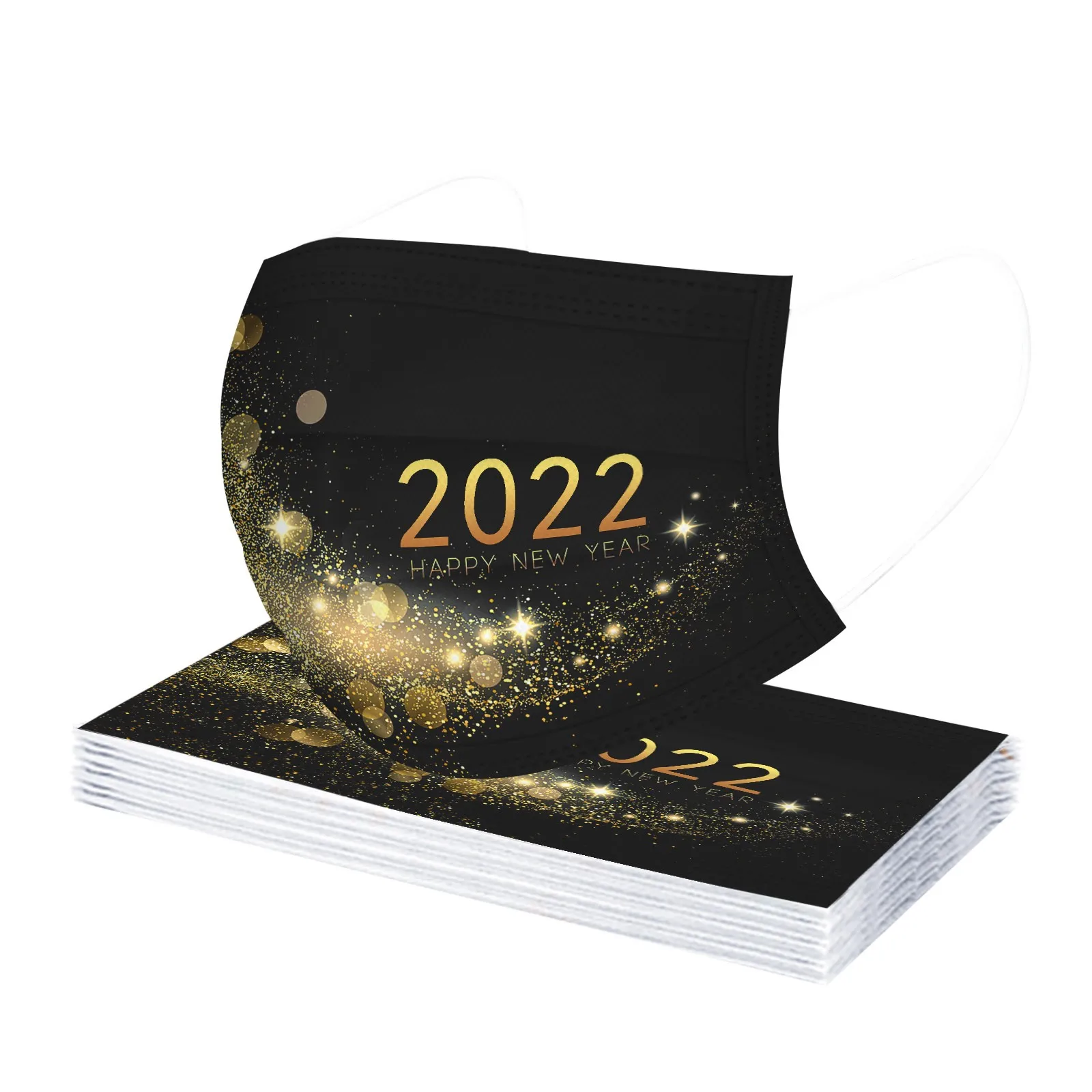 10 шт., маски Для Лица с новым годом 2022, Рождество, черные и золотые маски, одноразовая Маска Для взрослых, 3-слойная Маска Для Лица От Вируса, маски