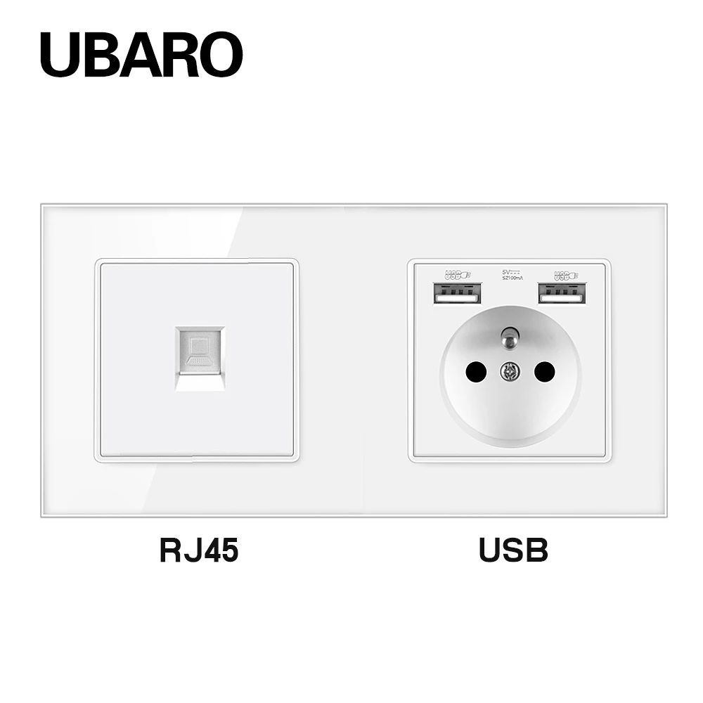 UBARO немецкая стандартная стенная розетка из закаленного стекла RJ45 RJ11 TV USB 5V 2A CombinationTerminals домашняя розетка AC100-250V 16A