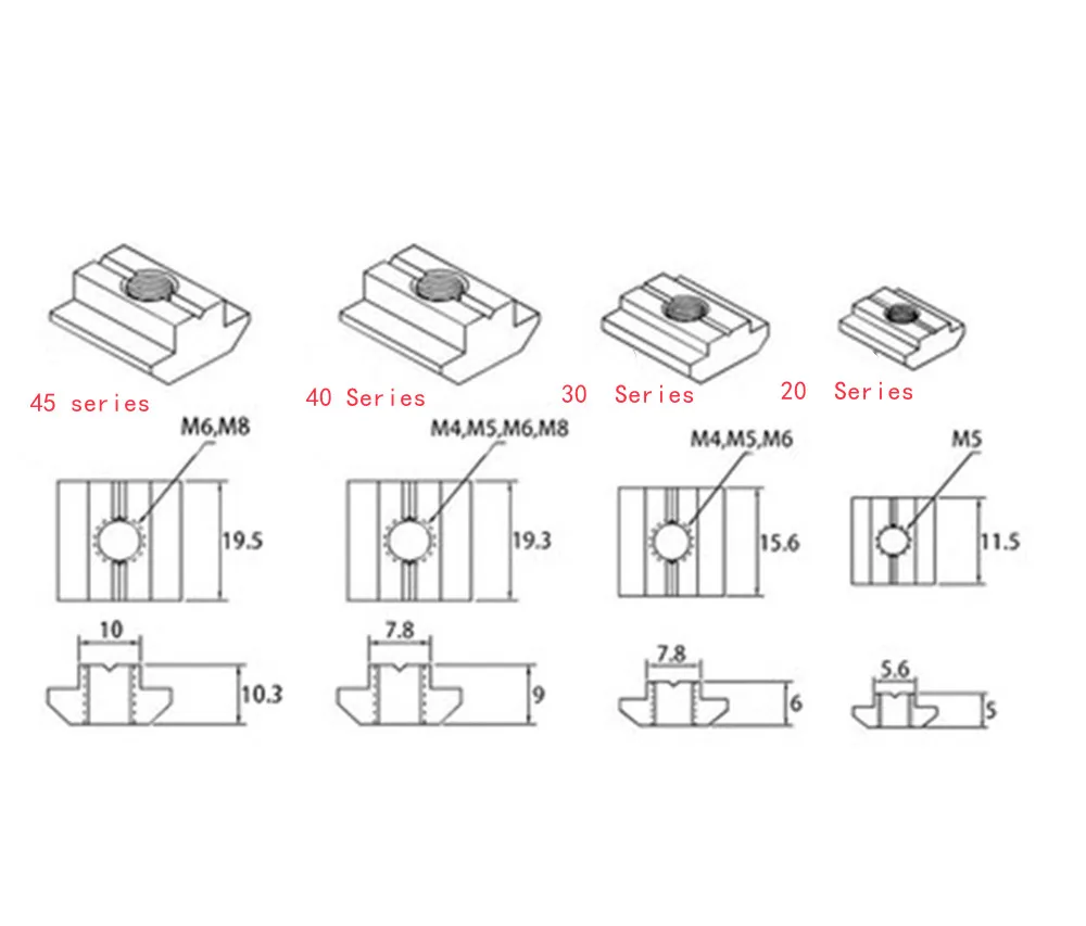51020 шт. M3 M4 M5 M6 M8 T блок квадратные гайки T-Track раздвижная гайка молотка 2020 3030 4040 4545 для крепежа алюминиевый профиль