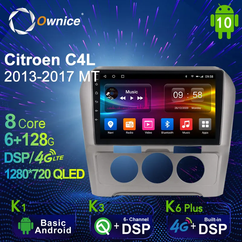 Ownice 1280*720 Android 10,0 K3 K6 Plus Автомобильный мультимедийный авто радио для Citroen C4L 2013 - 2017 MT 4G LTE аудио GPS плеер 8 ядер