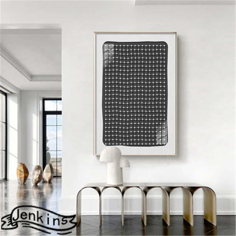 Настенная живопись, абстрактный настенный постер черного и серого цвета с геометрическим рисунком в клетку, в скандинавском стиле, для гостиной, домашнего декора