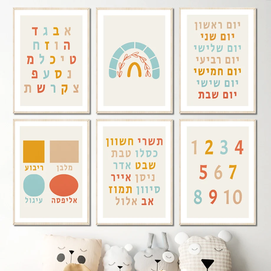 Еврейские настенные картины в форме букв алфавита и цифр, Картина на холсте в скандинавском стиле, образовательные плакаты и принты, настенные картины, декор для детской комнаты
