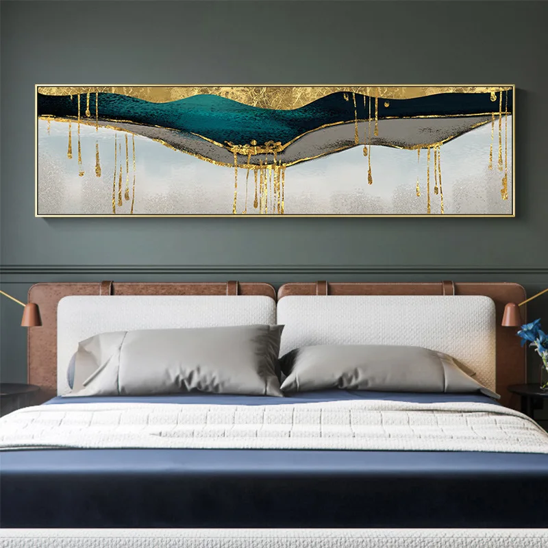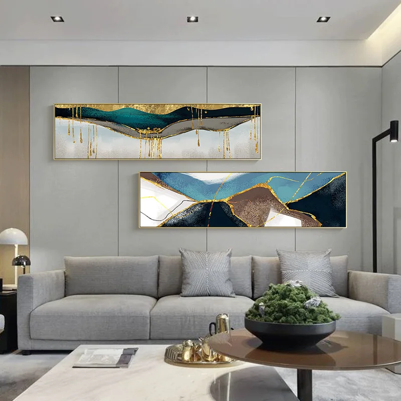 Абстрактный синий желтый Холст Картина с золотой фольгой современный золотой плакат настенные художественные фотографии для гостиной Синий принт украшение