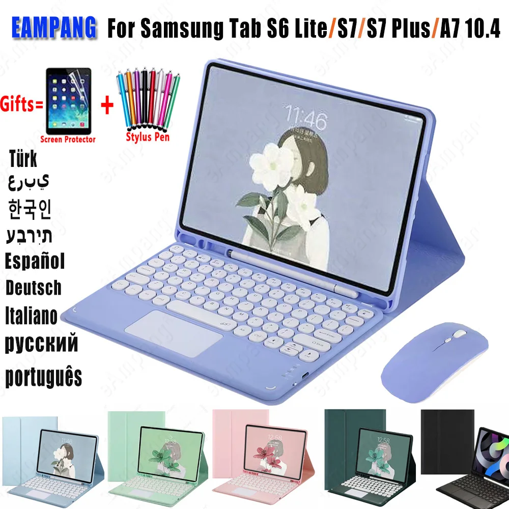 Чехол для клавиатуры с испанской тачпадом и мышью для Samsung Tab S6 Lite S7 Plus FE 12,4 S8 S8 + A7 10,4 русская Арабская Корейская клавиатура