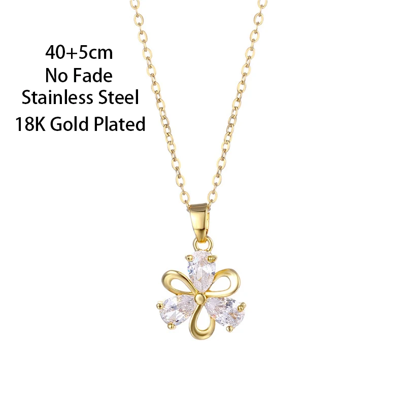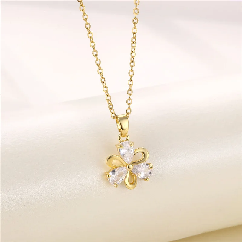 Женское Ожерелье из нержавеющей стали, элегантный кулон золотого цвета с бантом и кристаллами циркония, Свадебная и вечерняя бижутерия