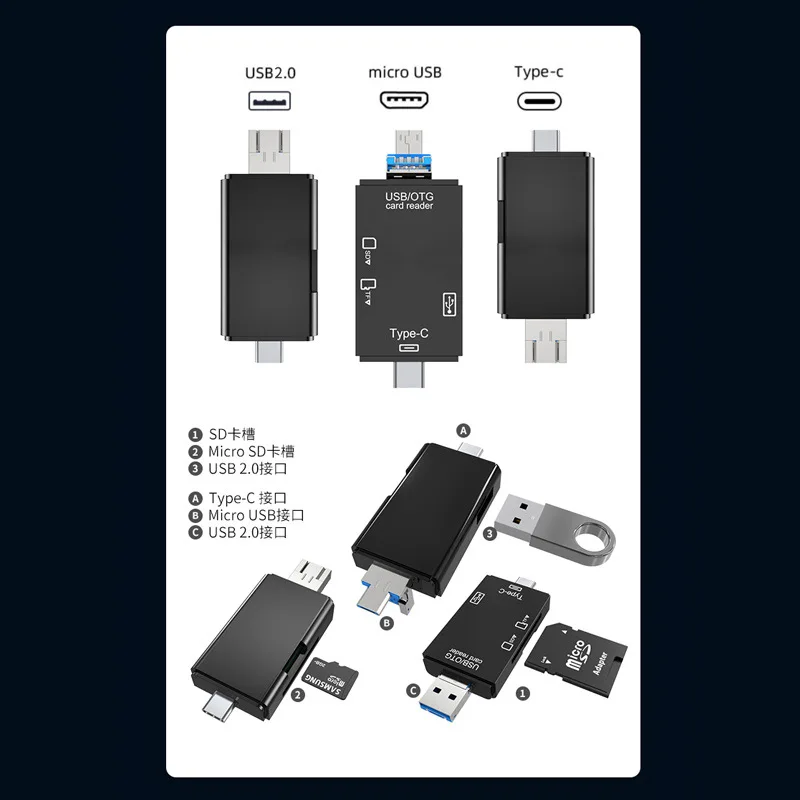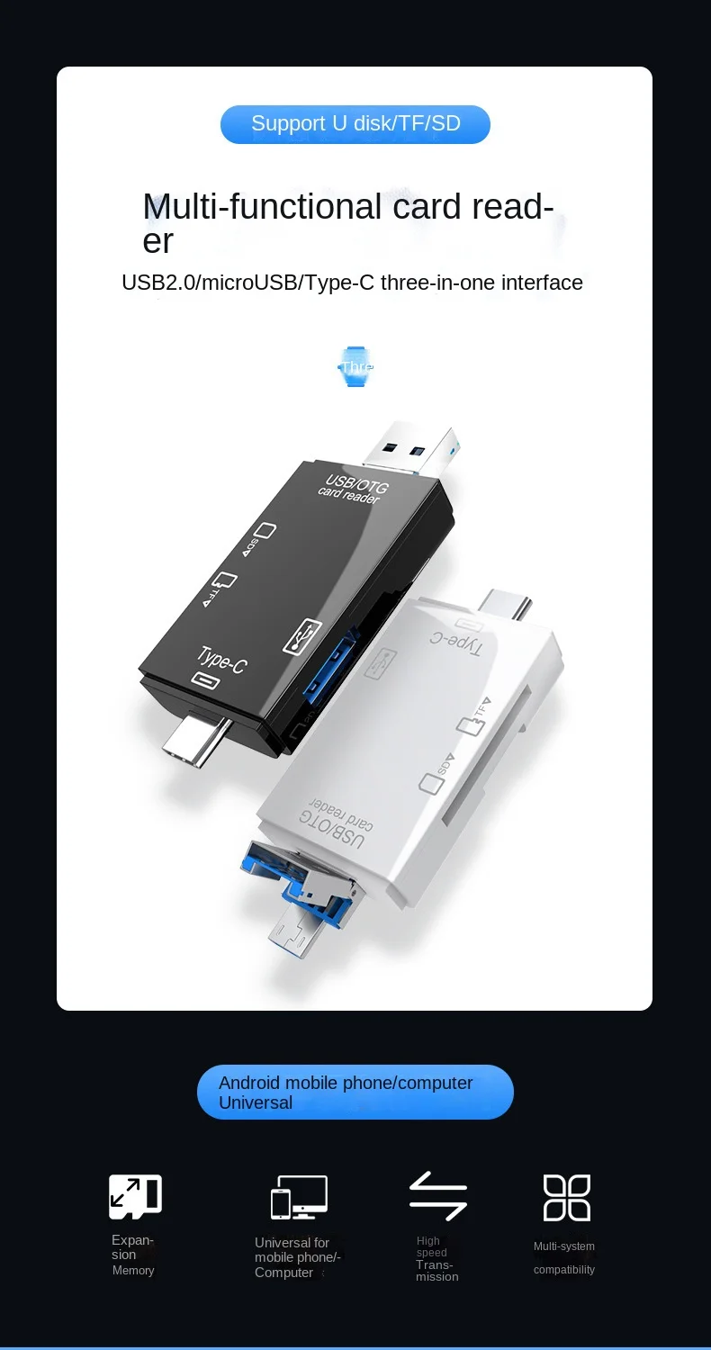 OTG кардридер 3-в-1 с разъемами типа C, Micro USB и USB, высокоскор...