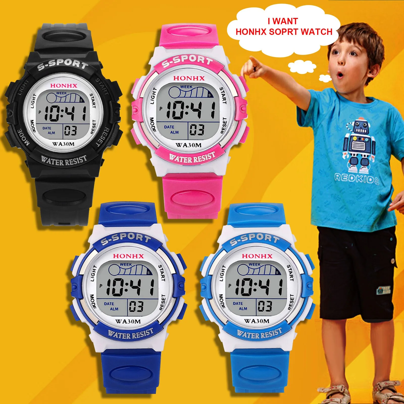 Водонепроницаемые детские цифровые светодиодные спортивные часы, эл...