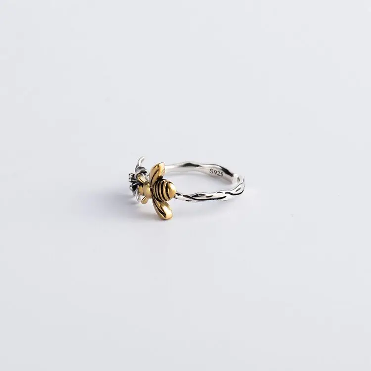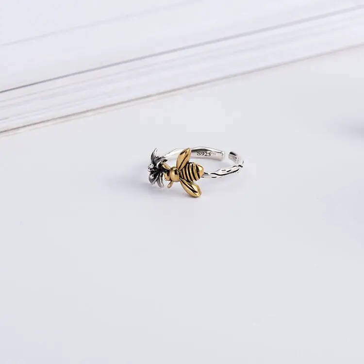 Кольцо Открытое посеребренное с Пчелкой и цветком, TYB86