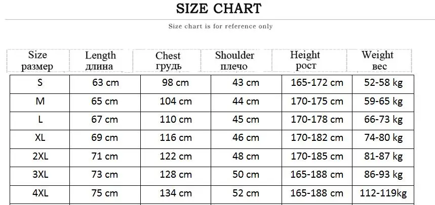 1. Это китайский размер, обычно на 2-3 размера меньше, чем Европейский/американский размер. Если вы носите Европейский/американский размер M, вы можете выбрать наш Размер XL или XXL.2. Как измеряется вручную; Погрешности могут составлять 1-3 см разницу допускается (1 см = 0,39 дюймов).3. Разные компьютеры могут отображать разные цвета, даже если они одного цвета. Пожалуйста, учитывайте разумную разницу в цвете.4. Как правило, мы можем отправить ваш заказ в течение 3 дней после оплаты, если нет, пожалуйста, свяжитесь с нами, чтобы проверить проблему.