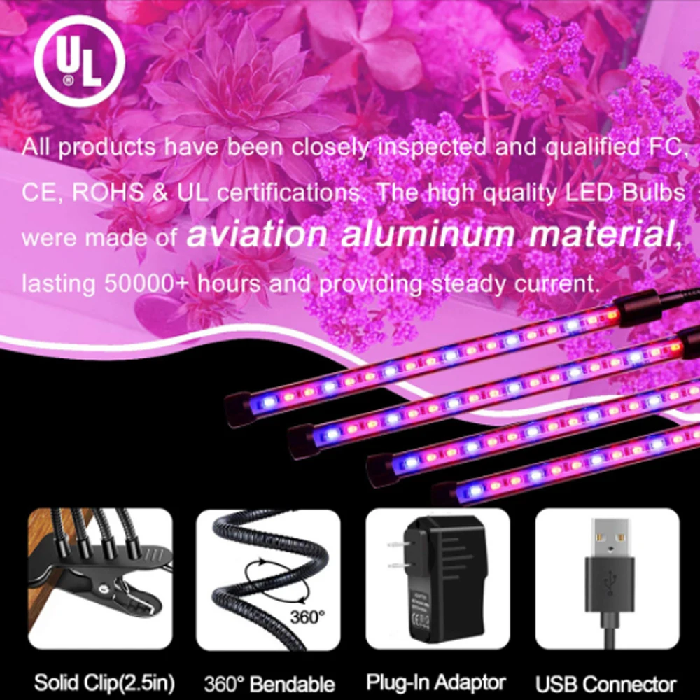 Полный спектр Phytolamps DC5V USB СВЕТОДИОДНЫЙ светильник для выращивания с таймером Настольный зажим Фито лампы для комнатных растений цветы растут коробка рассады