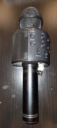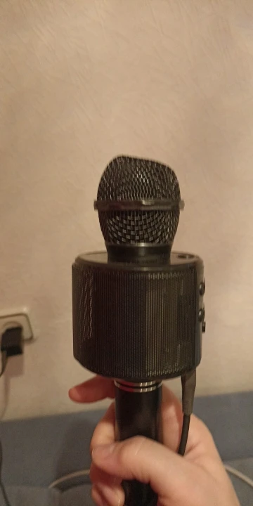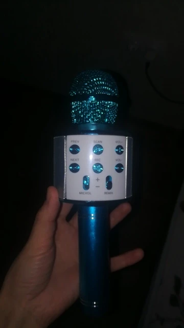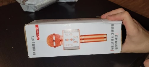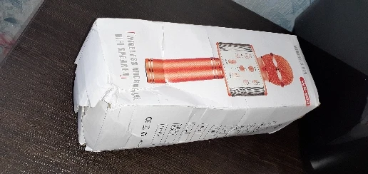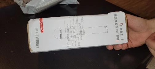 упаковка вся разорвана, микрофон помят, но работает, для детей сойдёт. Два микрофона от одного телефона не сопрягаются.