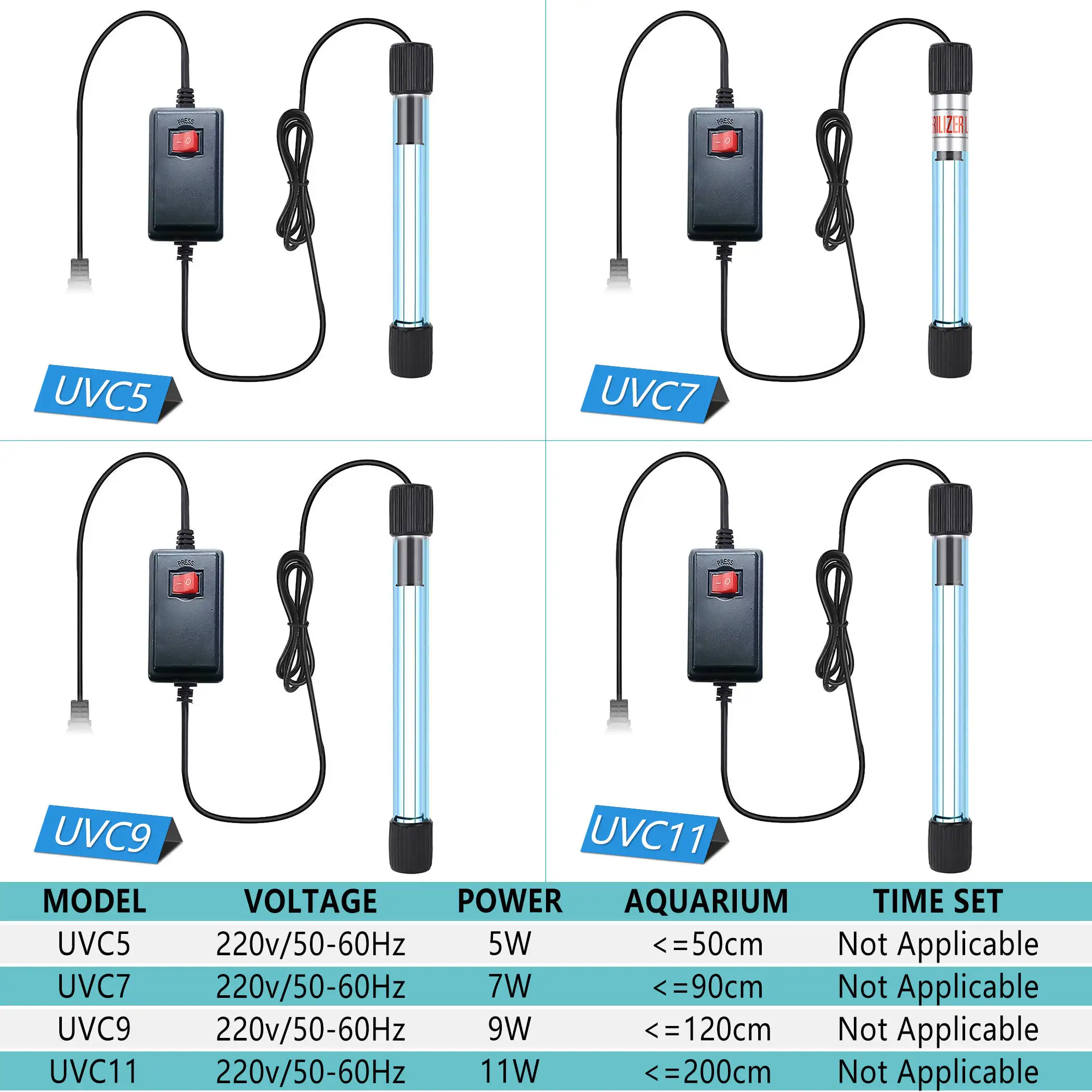 Описание товара:[UVC5 Размер]Appr. 175x23 мм (Д x Г); Напряжение: 220 В/50-60 Гц; Мощность: 5 Вт; Размер бака: длина менее 50 см; Длина шнура питания: appr. 1 м.[UVC7 Размер]Appr. 175x23 мм (Д x Г); Напряжение: 220 В/50-60 Гц; Мощность: 7 Вт; Размер бака: длина менее 90 см; Длина шнура питания: appr. 1 м.[UVC9 Размер]Appr. 235x23 мм (Д x Г); Напряжение: 220 В/50-60 Гц; Мощность: 9 Вт; Размер бака: длина менее 120 см; Длина шнура питания: appr. 1 м.[UVC11 Размер]Appr. 235x23 мм (Д x Г); Напряжение: 220 В/50-60 Гц; Мощность: 11 Вт; Размер бака: длина менее 200 см; Длина шнура питания: appr. 1 м.[Материал]Материал корпуса: стекло[Особенность]Эффективное удаление и стерилизация водорослей[Предупреждение]1. Не подвергайте кожу и глаз непосредственно под УФ-светильник. 2. Бактерицидная лампа может использоваться только в фильтрующем баке, и ей запрещено непосредственно излучать организмы.[Примечание]1. Этот продукт стерилизует и удаляет водоросли путем излучения ультрафиолетовых лучей. Пожалуйста, не наблюдайте за ним невооруженным глазом. Прямое воздействие повредит глаза и кожу людей. Пожалуйста, обратите внимание на защиту. 2. Отсоедините все вилки электрических аквариумных приборов, прежде чем положить руки в воду. 3. Этот продукт должен быть подключен к правильному напряжению и мощности.[Свяжитесь с нами]Если у вас есть какие-либо вопросы, пожалуйста, свяжитесь с нами. Мы считаем, что все можно решить путем общения, и мы приложим усилия, чтобы помочь решить ваши проблемы.
