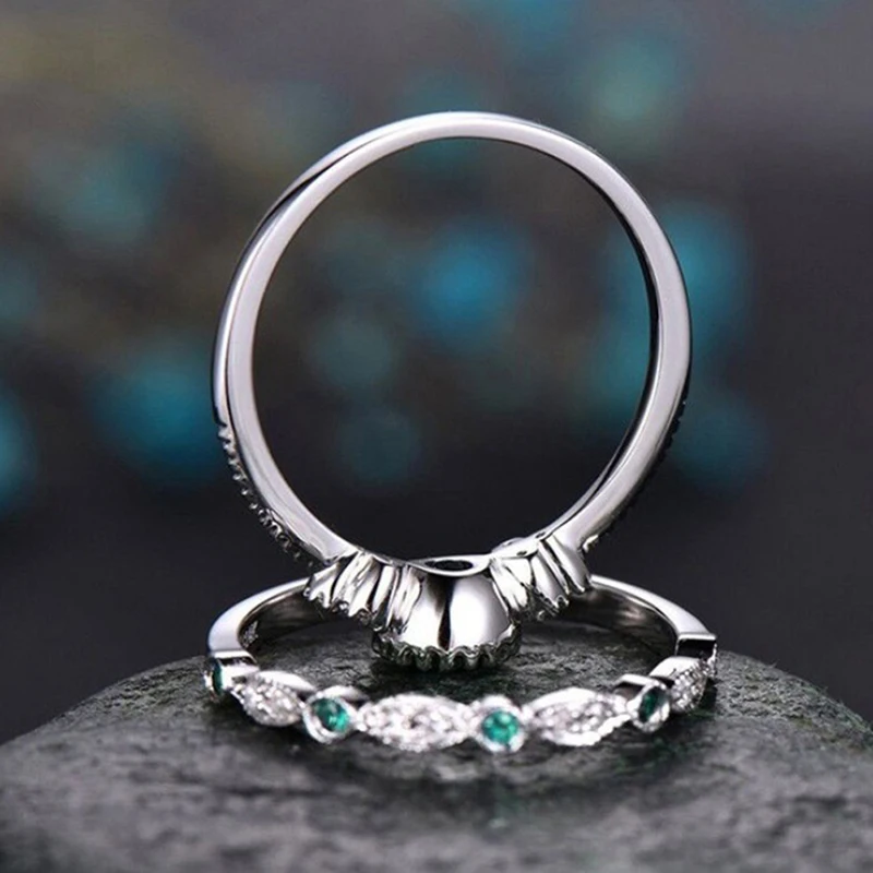 Кольца на палец с кристаллами, 2 шт.компл., роскошные кольца с зеле...