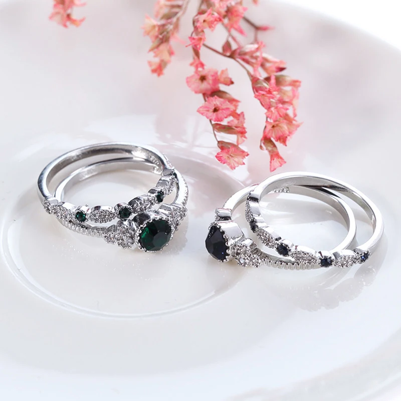 2 шт.компл. 2019 Модные кольца для женщин с зеленым синим фиолетовы...
