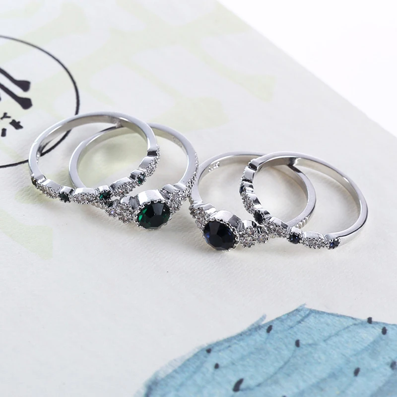 2 шт.компл. роскошные кольца на палец с зеленым или синим камнем с ...