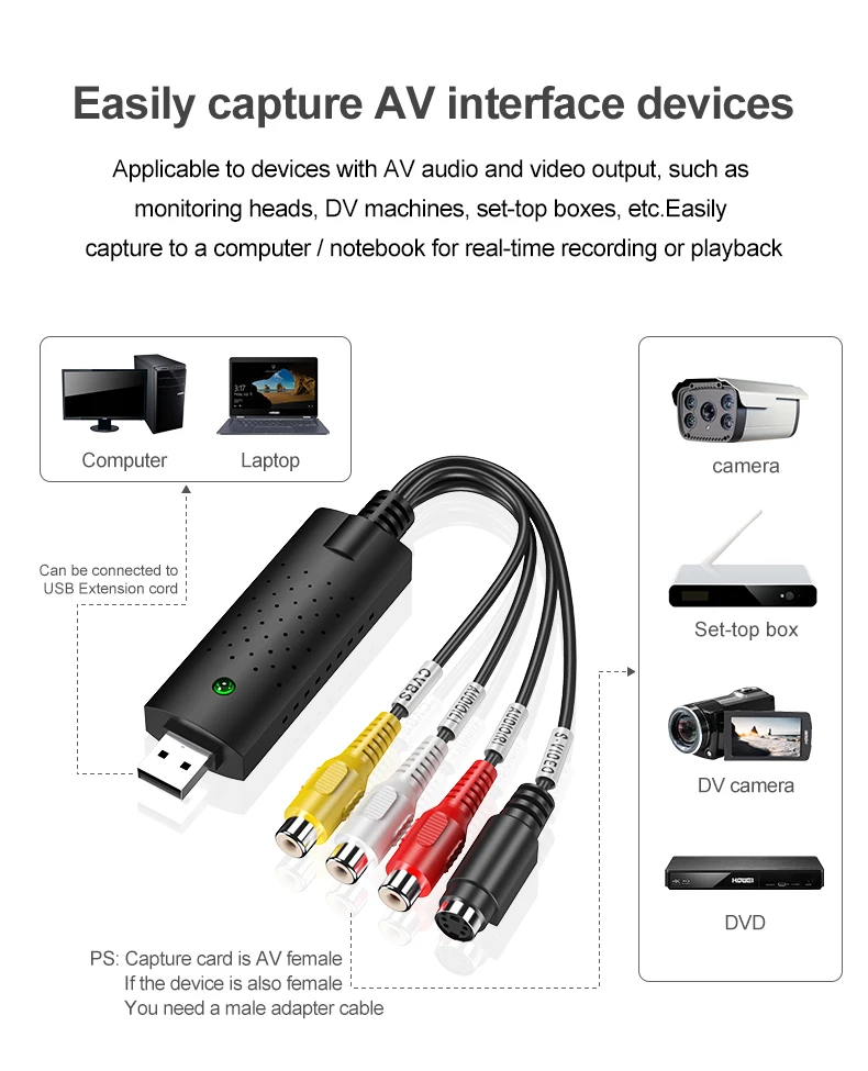 USB 2,0 конвертер VHS в DVD конвертирует Аналоговое видео в цифровой формат аудио видео DVD VHS карта записи качественный адаптер для ПК